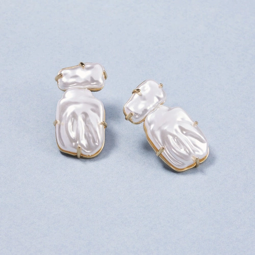 Pozłacane kolczyki wkrętki zdobione perłową emalią
