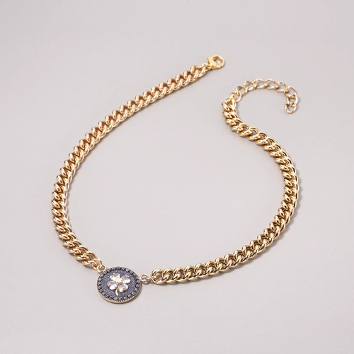 Pozłacany wisior z zawieszką z koniczynką z cyrkonii