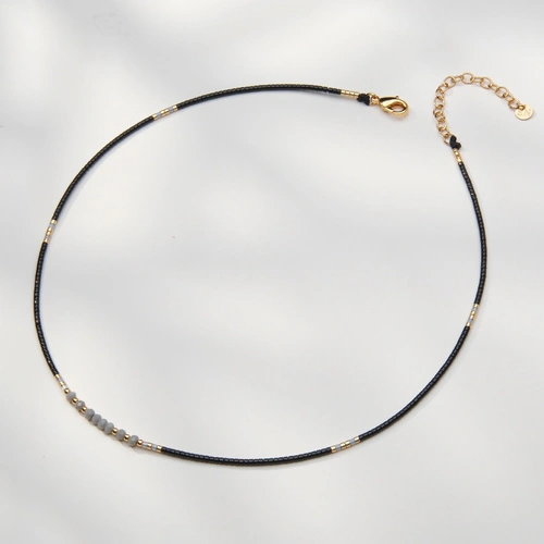 Naszyjnik z czarnych koralików i jasnoszarych kryształków