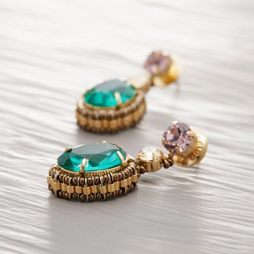 Pozłacane kolczyki z dużymi szmaragdowymi kryształami