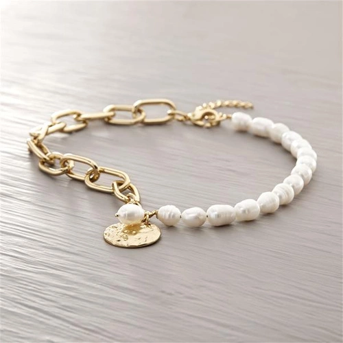 Naszyjnik z pozłacanego łańcucha i pereł, z zawieszką