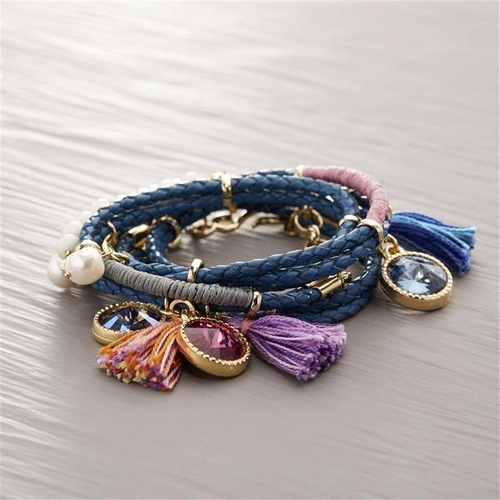 Bransoletka z ekoskóry z kryształowymi zawieszkami