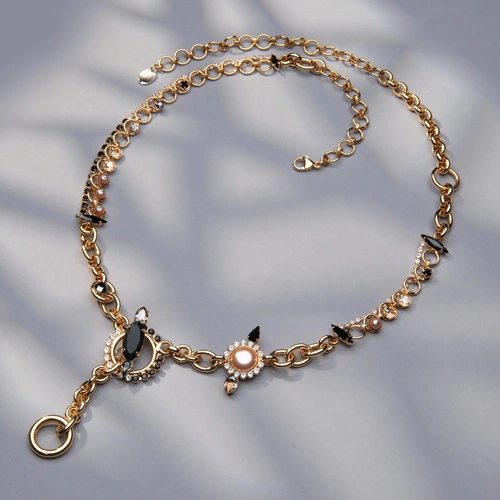 Złocony naszyjnik z białymi i czarnymi kryształkami