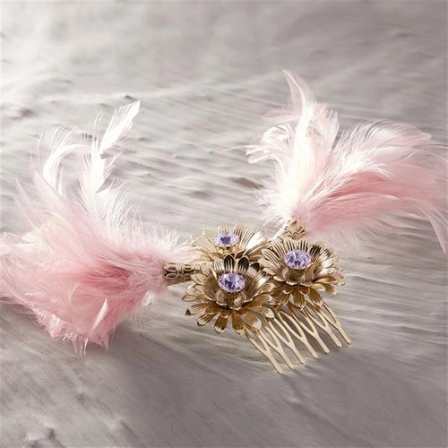 Spinka do włosów z piórami w różu i kryształkami