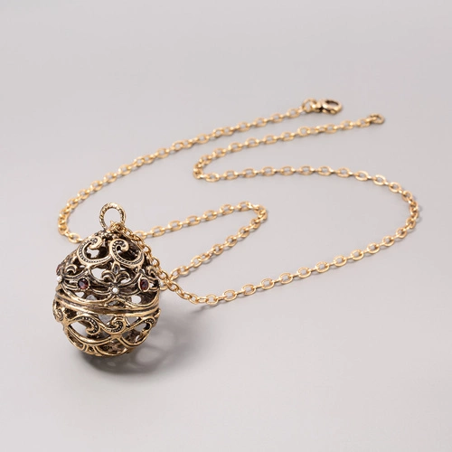 Pozłacany naszyjnik z ażurowym jajkiem z ptaszkiem