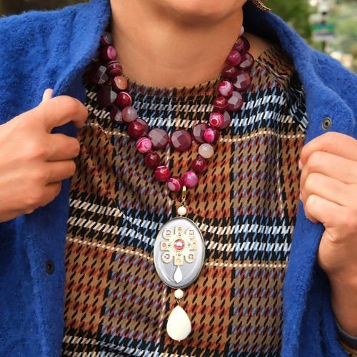 Naszyjnik z rubinowych agatów z motywem retro Chanel