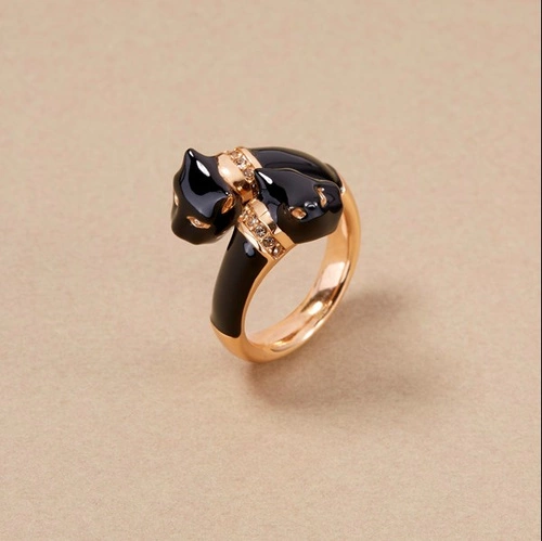 Regulowany pierścionek z czarną panterą i cyrkoniami