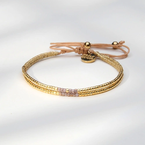 Bransoletka ze złotych i różowych paciorków Miyuki