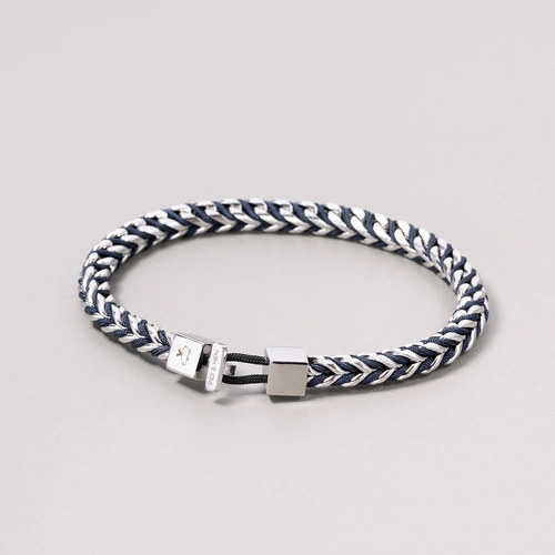 Bransoletka męska ze stali i czarnej linki żeglarskiej
