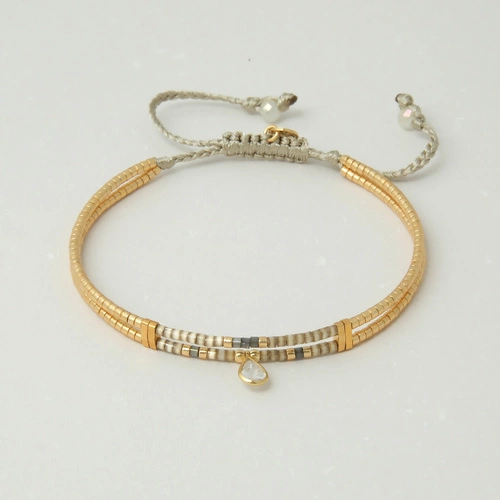 Dwurzędowa bransoletka z paciorków Miyuki z cyrkonią