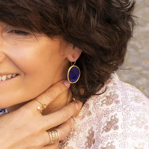 Krótkie kolczyki wiszące z okazałym czarnym kamieniem
