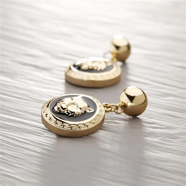 Kolczyki wiszące z białą zawieszką z głową tygrysa