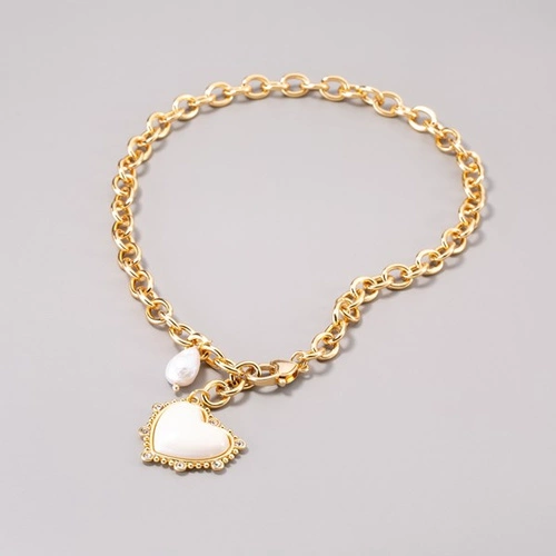 Krótki pozłacany naszyjnik z zapięciem na patyk i serce