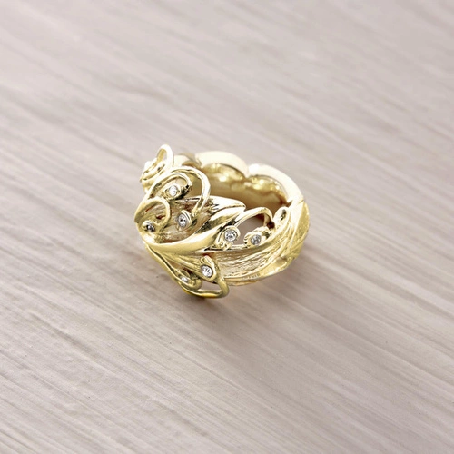 Uwielbiam duże koła. Maksimum kobiecości. Ale zależy mi też, żeby nie były za ciężkie, żeby złoto się nie ścierało, żeby miały eleganckie wykończenie. Pragnę przywrócić kobietom miłość do unikatów. Bo mnie najbardziej cieszą indywidualne projekty, które powstają we współpracy z Wami. Jak pierścionek z konwalią, którego powstawaniu towarzyszyło wiele długich rozmów o życiu i o emocjach. Tym, co najbardziej kocham w mojej pracy, jest właśnie nieustanne poznawanie ciekawych ludzi i te szczere rozmowy!