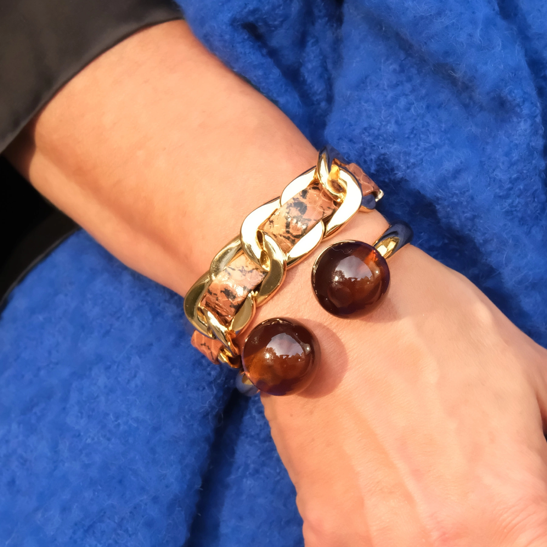 Bransoletka łańcuch z paskiem z motywem skóry węża