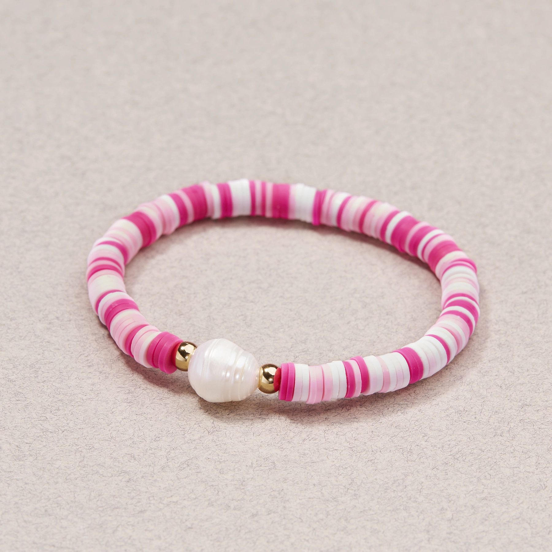 Bransoletka na gumce z różowych koralików. JOGURT Z MALINAMI