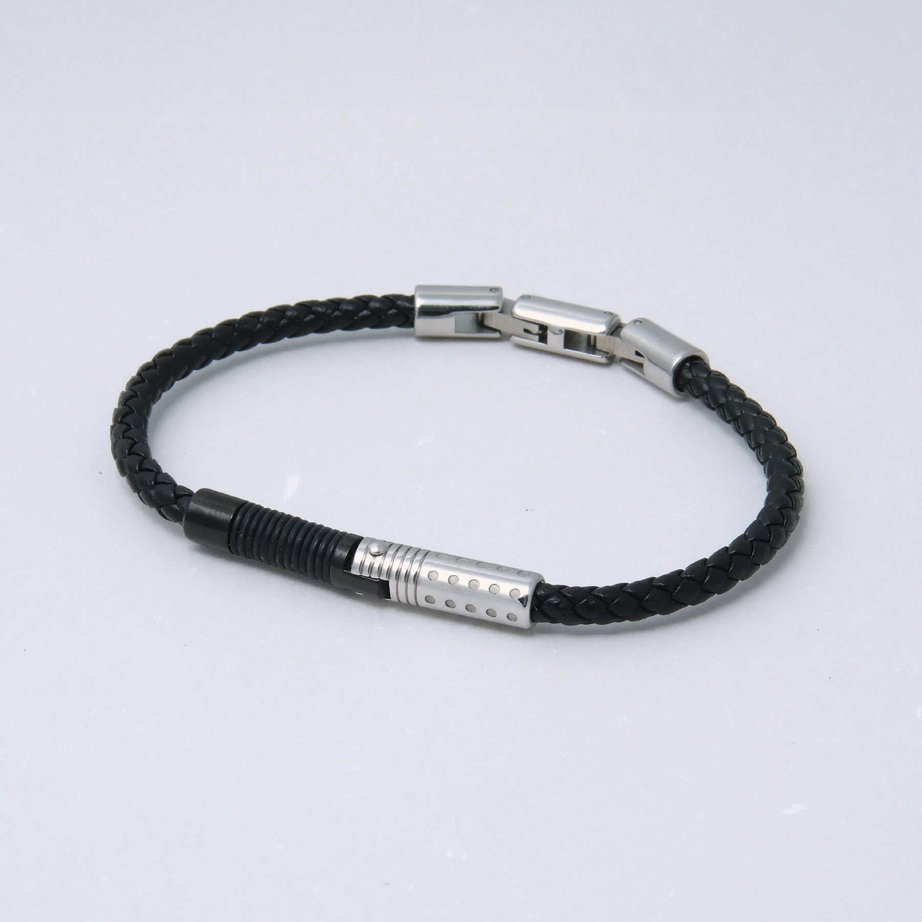 Bransoletka z 2 cylindrami na czarnej plecionej linie