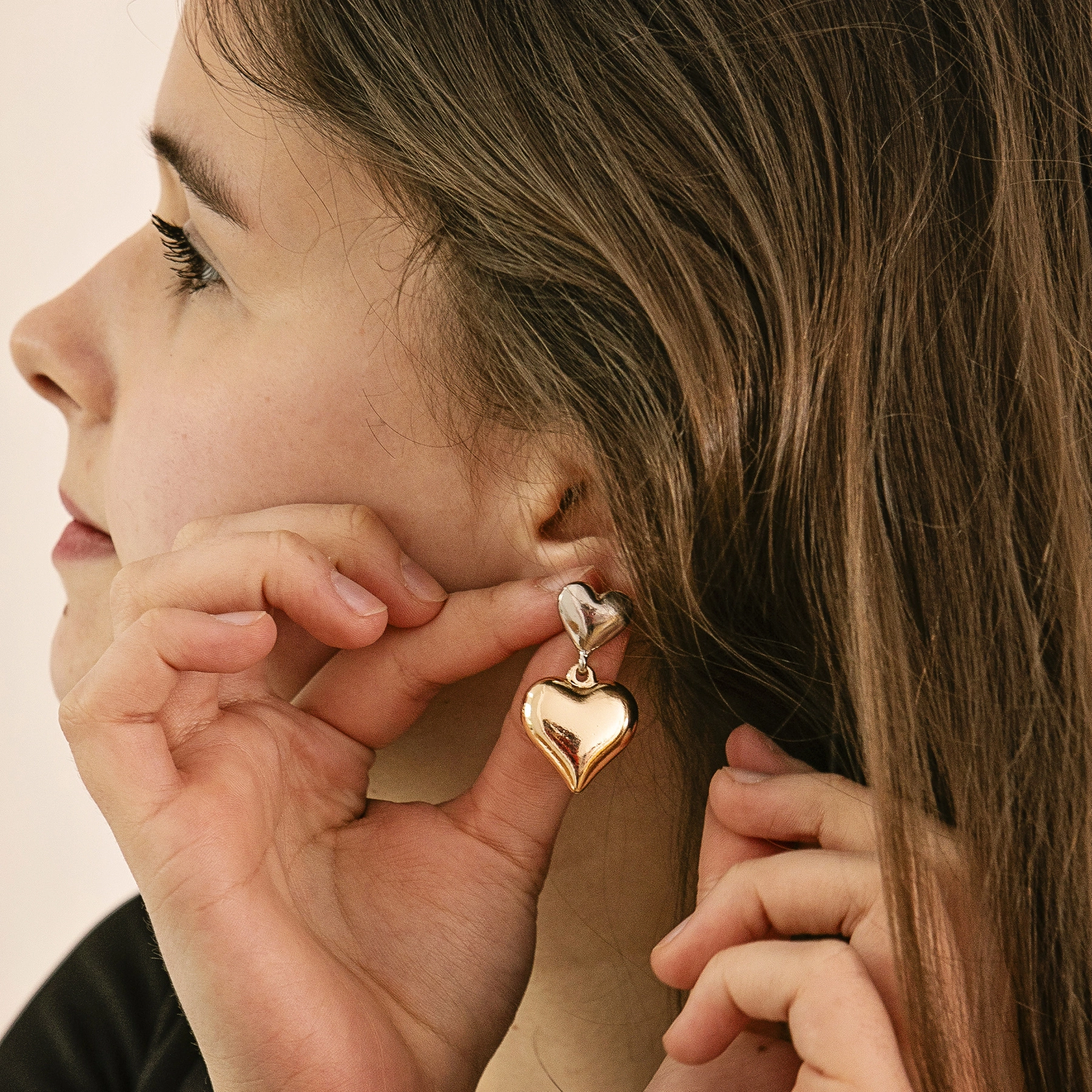Delikatne kolczyki wkrętki srebrne i złote serca