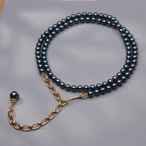 Długi złocony naszyjnik z pereł w kolorze petrol