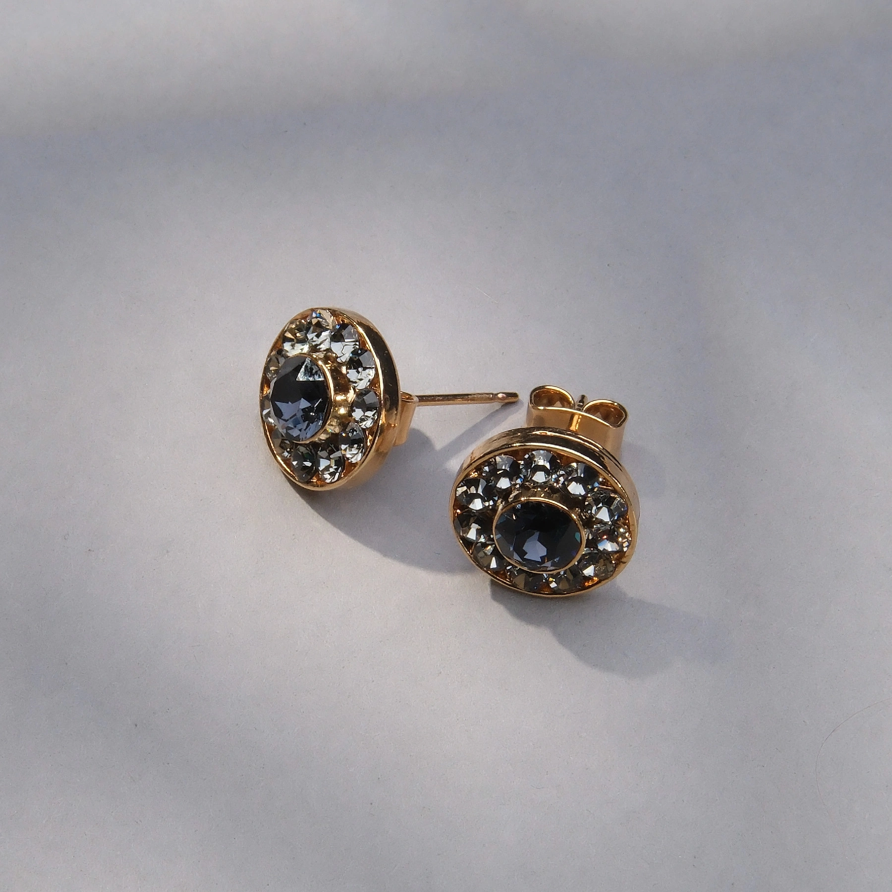 Drobne kolczyki z kryształkami w kolorze montana i szarym