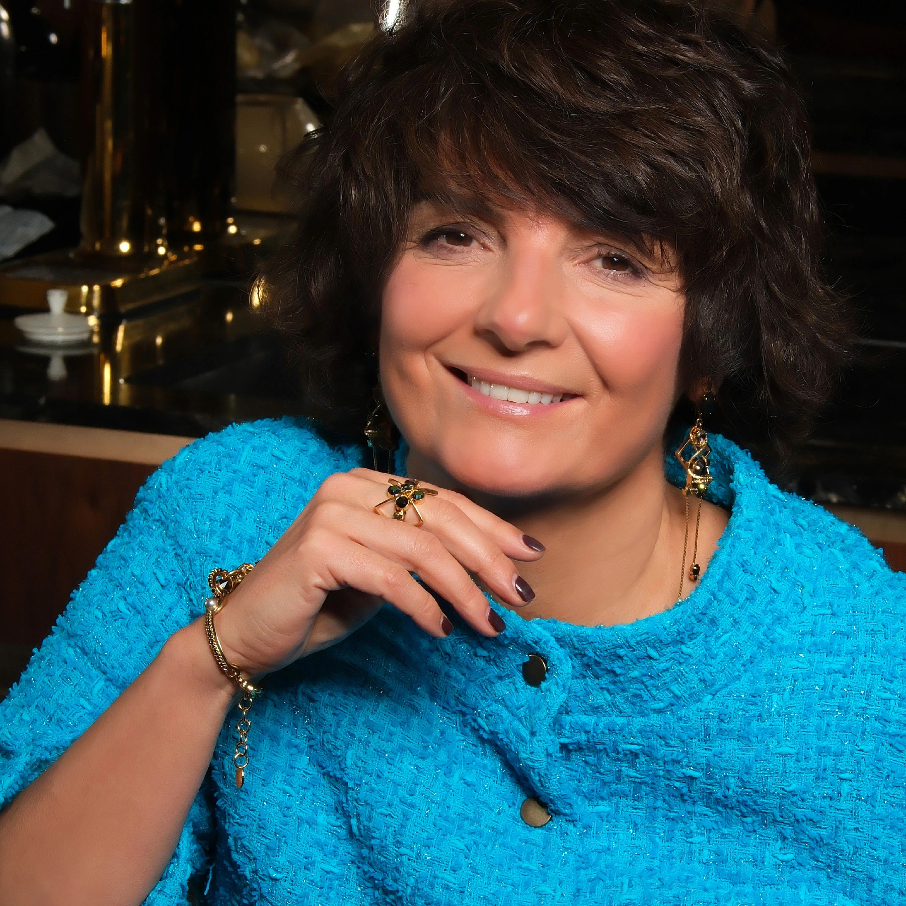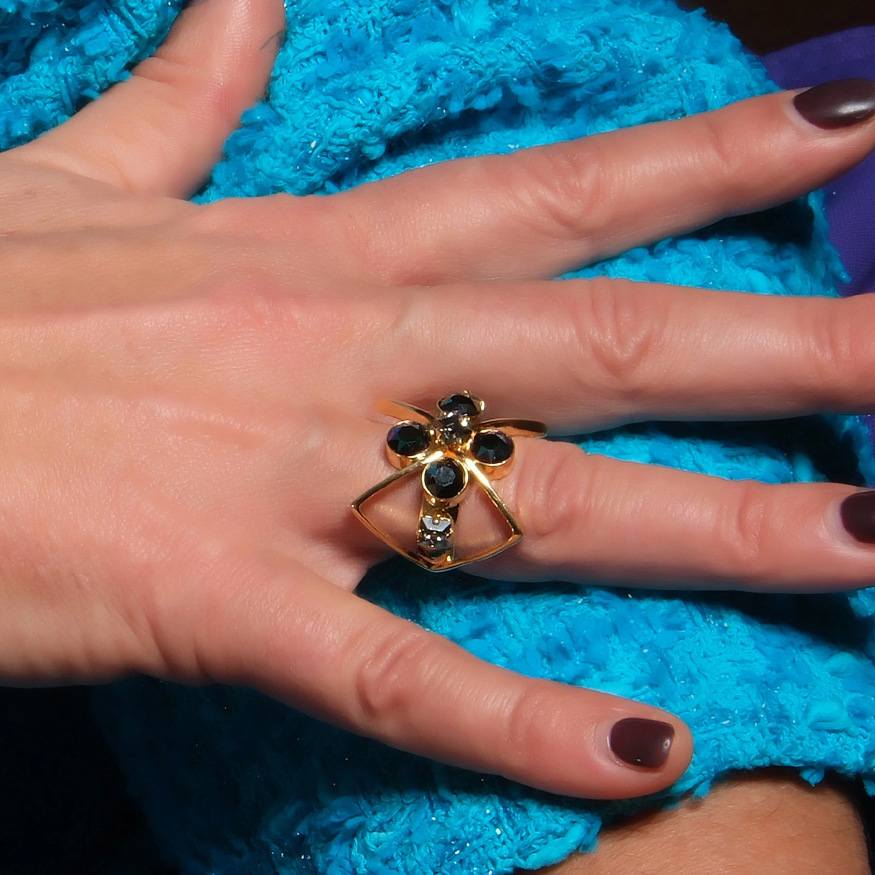 • Duży pierścionek z mosiądzu w kolorze złota ozdobiony kryształkami Swarovskiego. Nowoczesna forma wyszła spod ręki polskiego projektanta w Paryżu, Marka Wójcickiego, który jak mało kto rozumie współczesne kobiety! Noś codziennie, zawsze i wszędzie.
