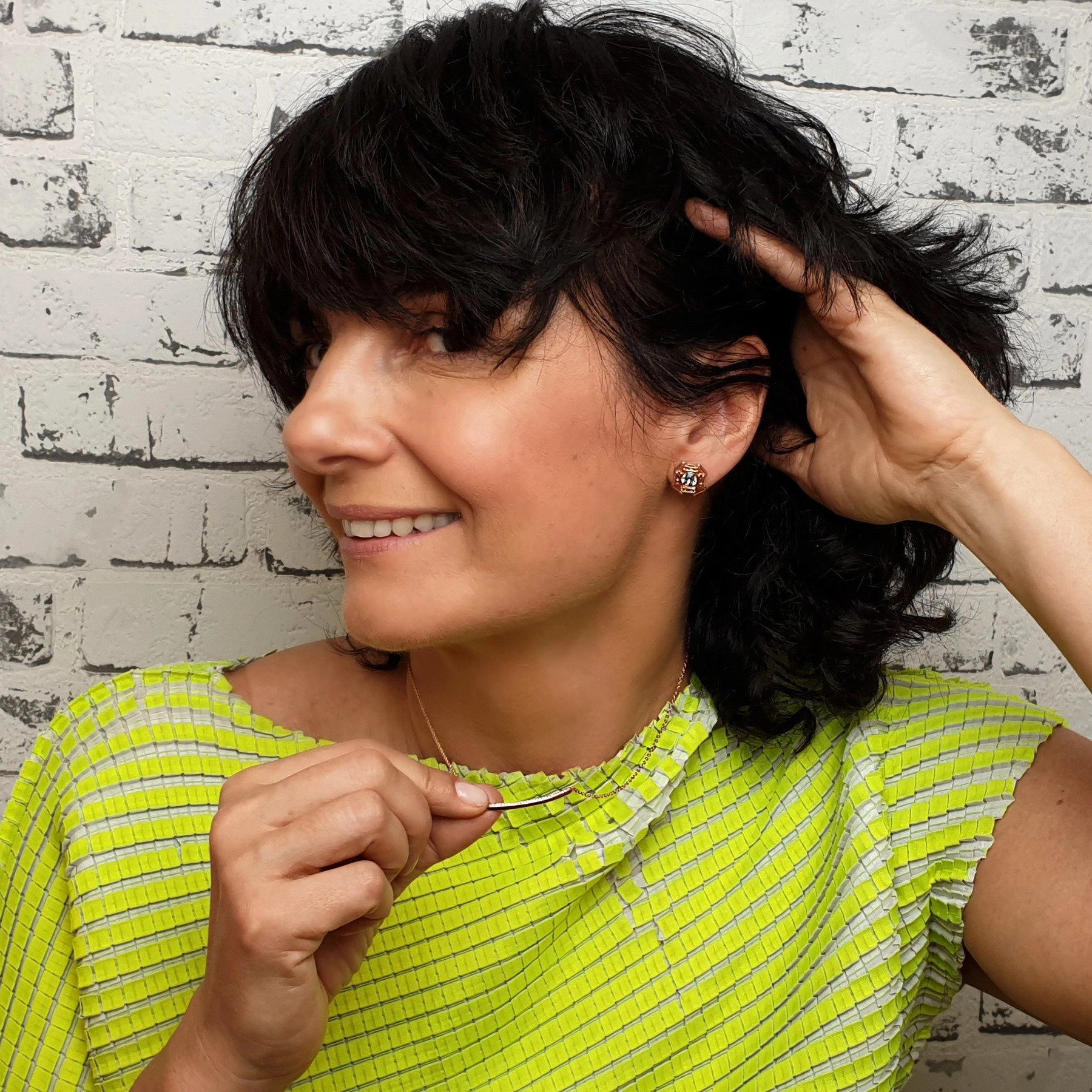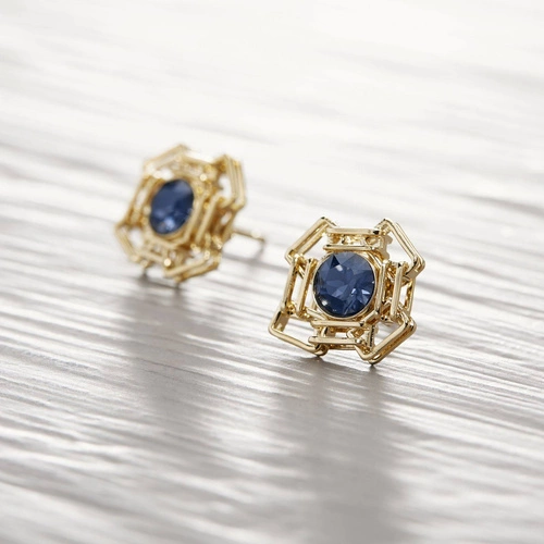Geometryczne kolczyki wkrętki z niebieskim kryształem
