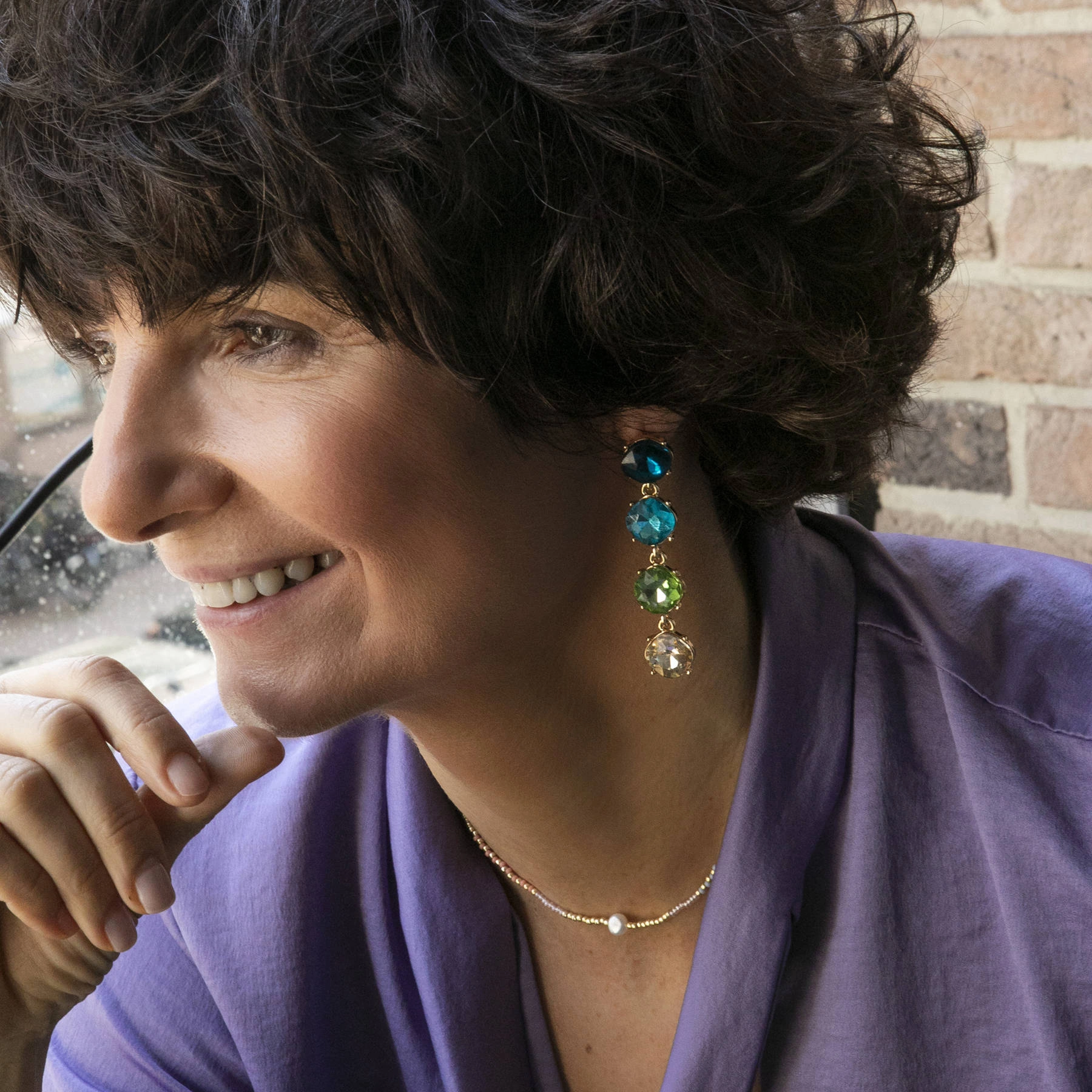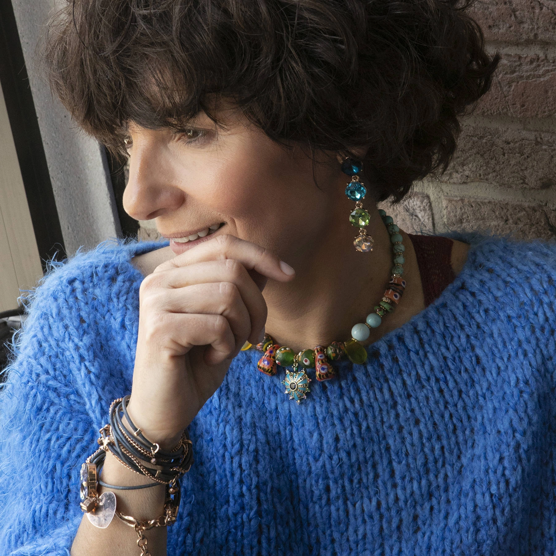 Kolczyki wiszące z niebieskimi i zielonymi kryształami