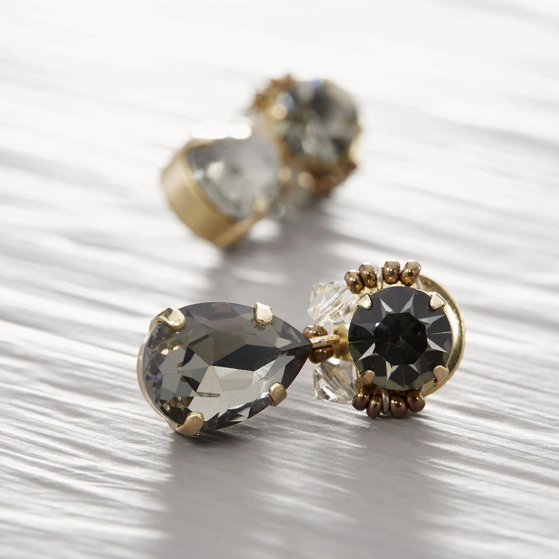 Kolczyki wiszące z szarymi kryształami. WIECZÓR