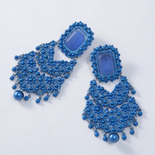 Kolczyki z niebieskimi falbankami i kryształem