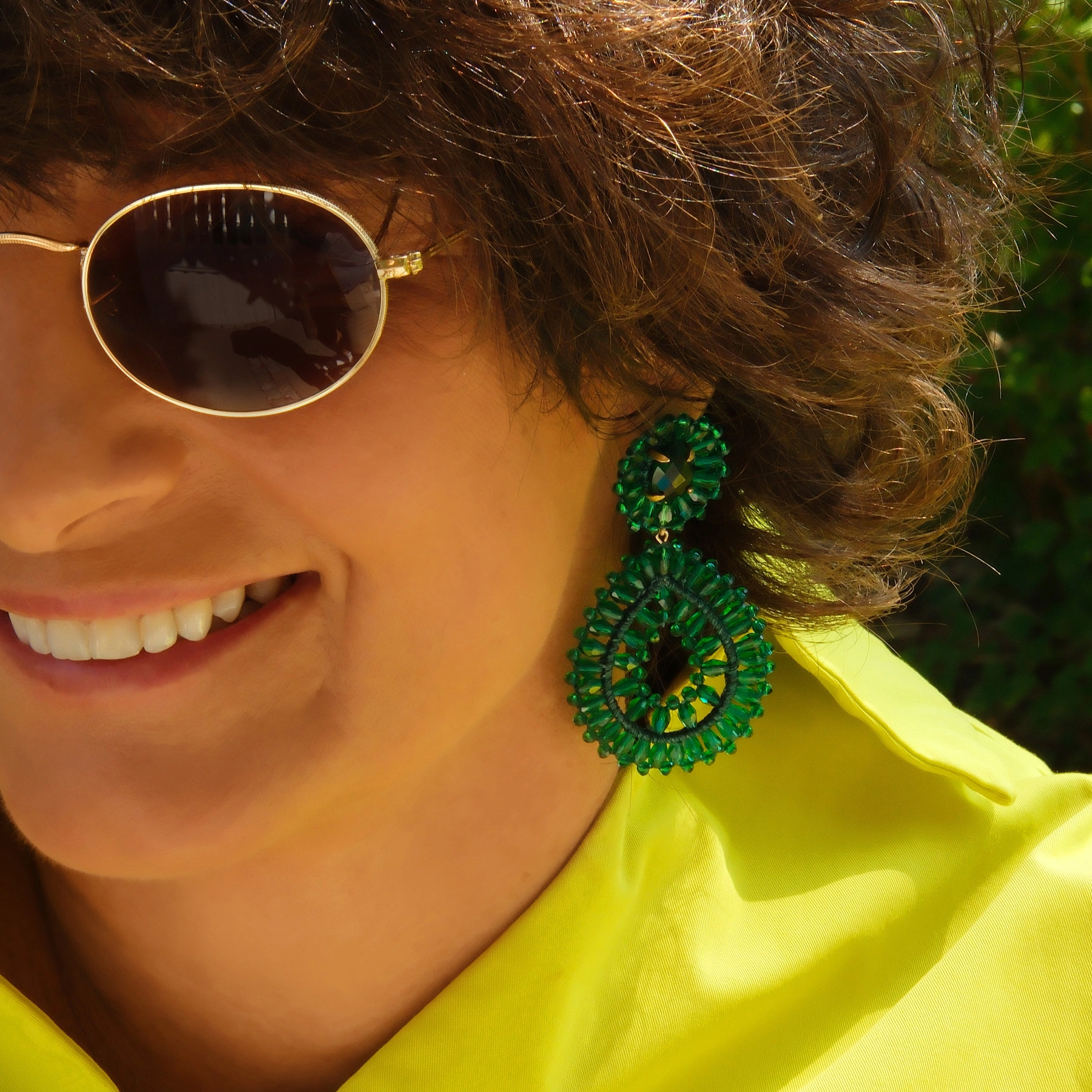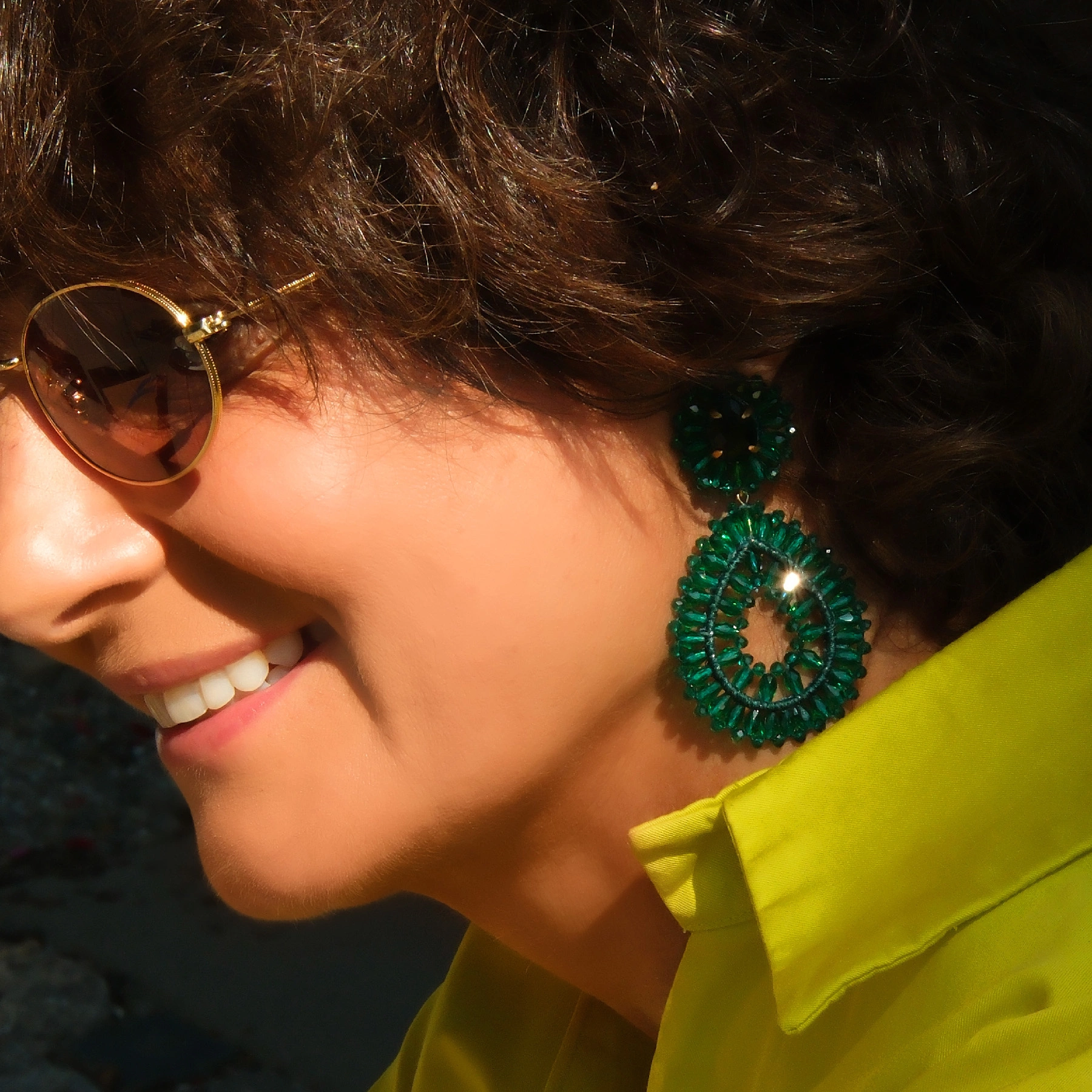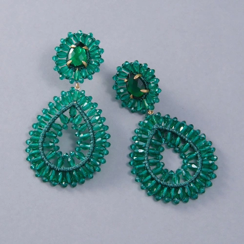 Kolczyki z zielonym kryształem i zawieszką w kształcie kropli