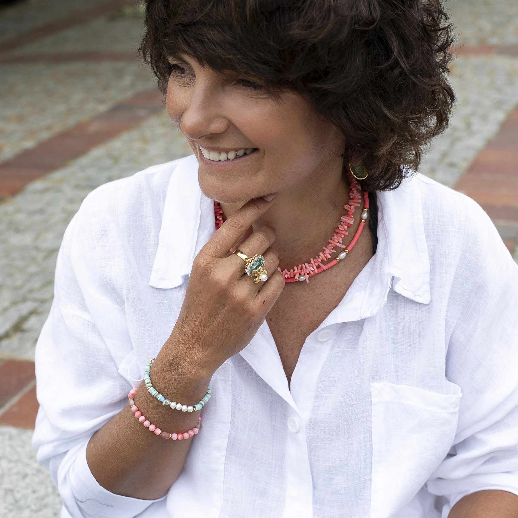 Przesadnej skromności projektantka mówi stanowcze NIE! Emilia Kipper tworzy dla kobiet, które nie boją się błyszczeć. Pragnie inspirować, dawać pewność siebie, poprawiać nastrój. Biżuteria luksusowa z Brazylii jest wyjątkowo kobieca, dzięki czemu idealnie nadaje się do łączenia z garniturem czy klasyczną "męską" koszulą. Wy też demonstrujcie swój charme i powab w pracy! Duża bransoletka w formie łańcucha czy naszyjnik z perłami to idealny sposób na ożywienie swojego looku i nadanie mu kobiecego charakteru bez ujmy dla swojego profesjonalizmu.