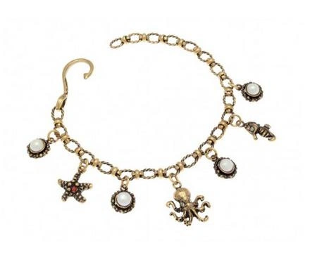 Krótki złocony naszyjnik z perłami i morskimi motywami