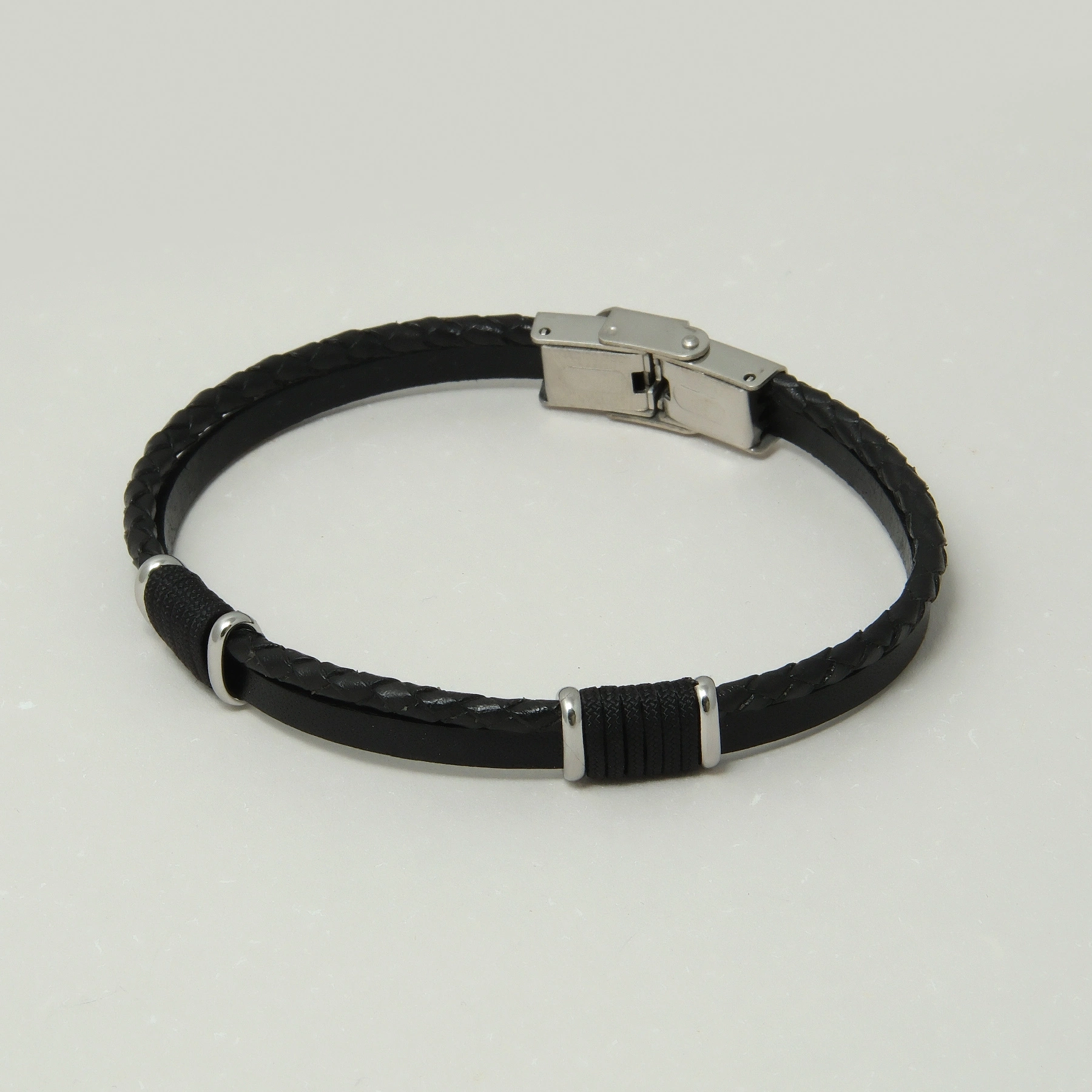 Męska bransoletka ze skóry ze stalowymi akcentami
