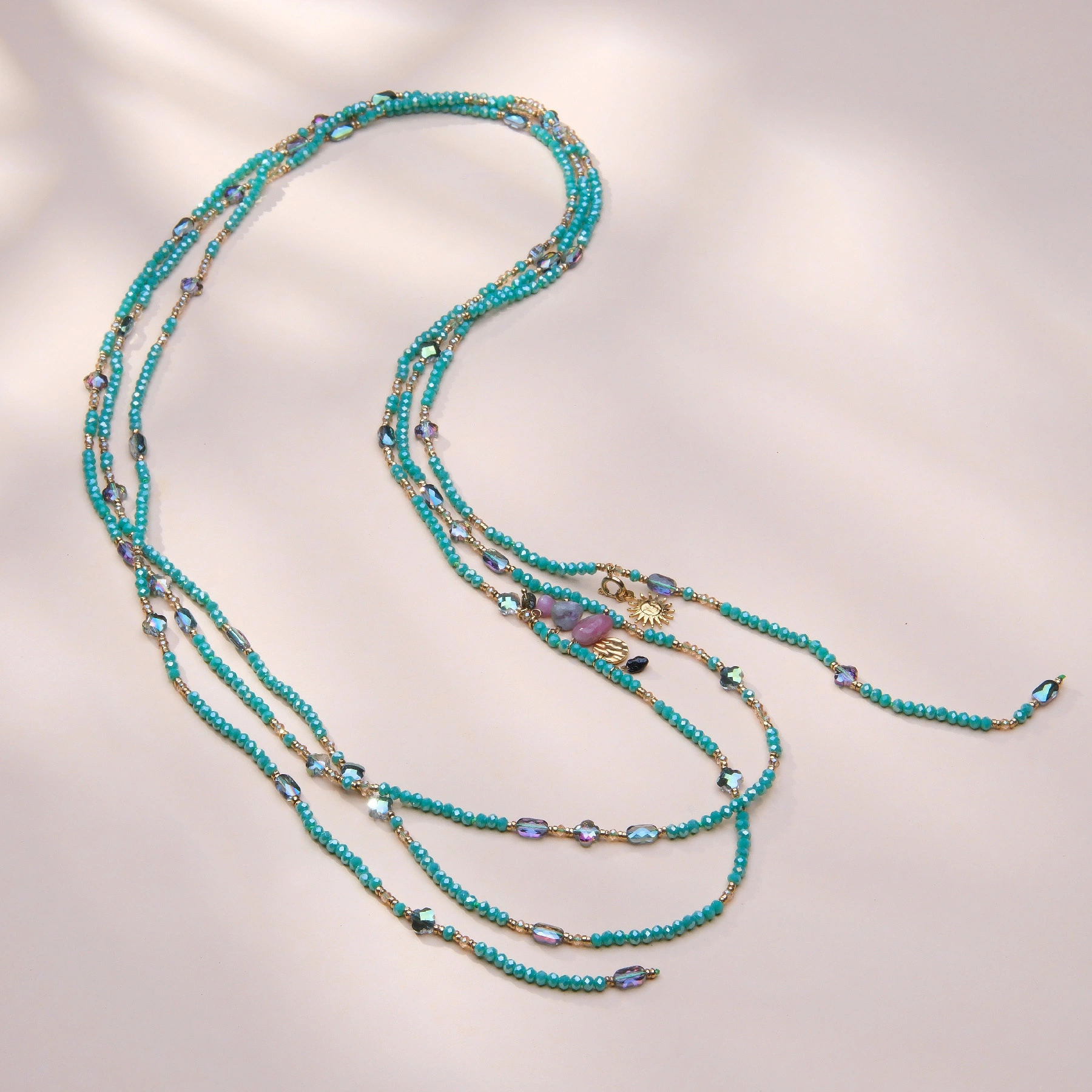 Naszyjnik z błękitnych spineli z kryształkami i zawieszkami