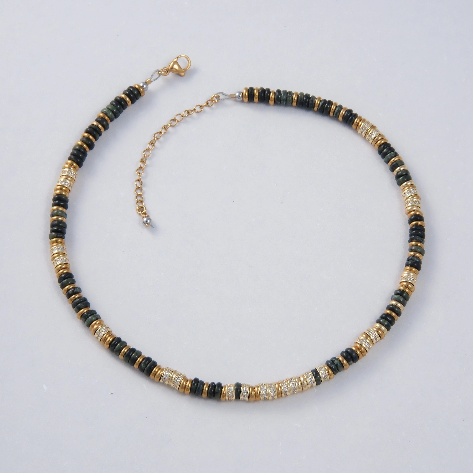 Naszyjnik z ciemnych jaspisów i koralików ze sztrasu