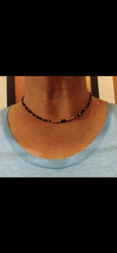 Naszyjnik z czarnych spineli i złoconych paciorków Miyuki