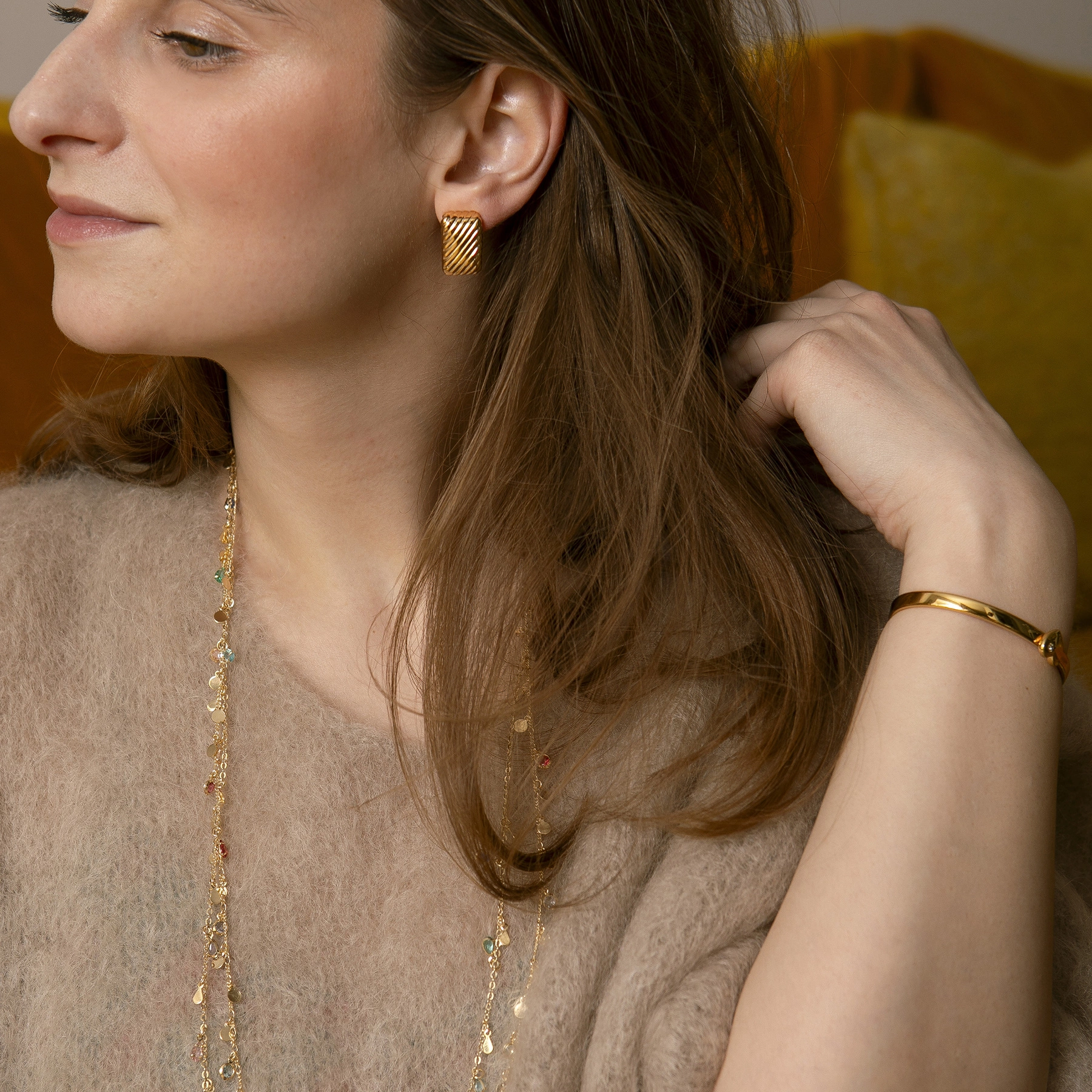 Przesadnej skromności projektantka mówi stanowcze NIE! Emilia Kipper tworzy dla kobiet, które nie boją się błyszczeć. Pragnie inspirować, dawać pewność siebie, poprawiać nastrój. Biżuteria luksusowa z Brazylii jest wyjątkowo kobieca, dzięki czemu idealnie nadaje się do łączenia z garniturem czy klasyczną "męską" koszulą. Wy też demonstrujcie swój charme i powab w pracy! Duża bransoletka w formie łańcucha czy naszyjnik z perłami to idealny sposób na ożywienie swojego looku i nadanie mu kobiecego charakteru bez ujmy dla swojego profesjonalizmu.