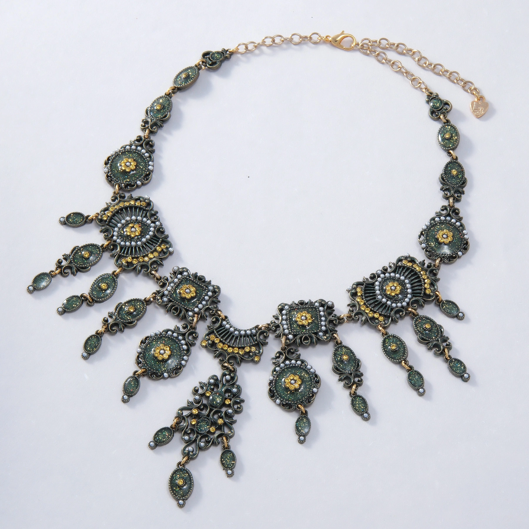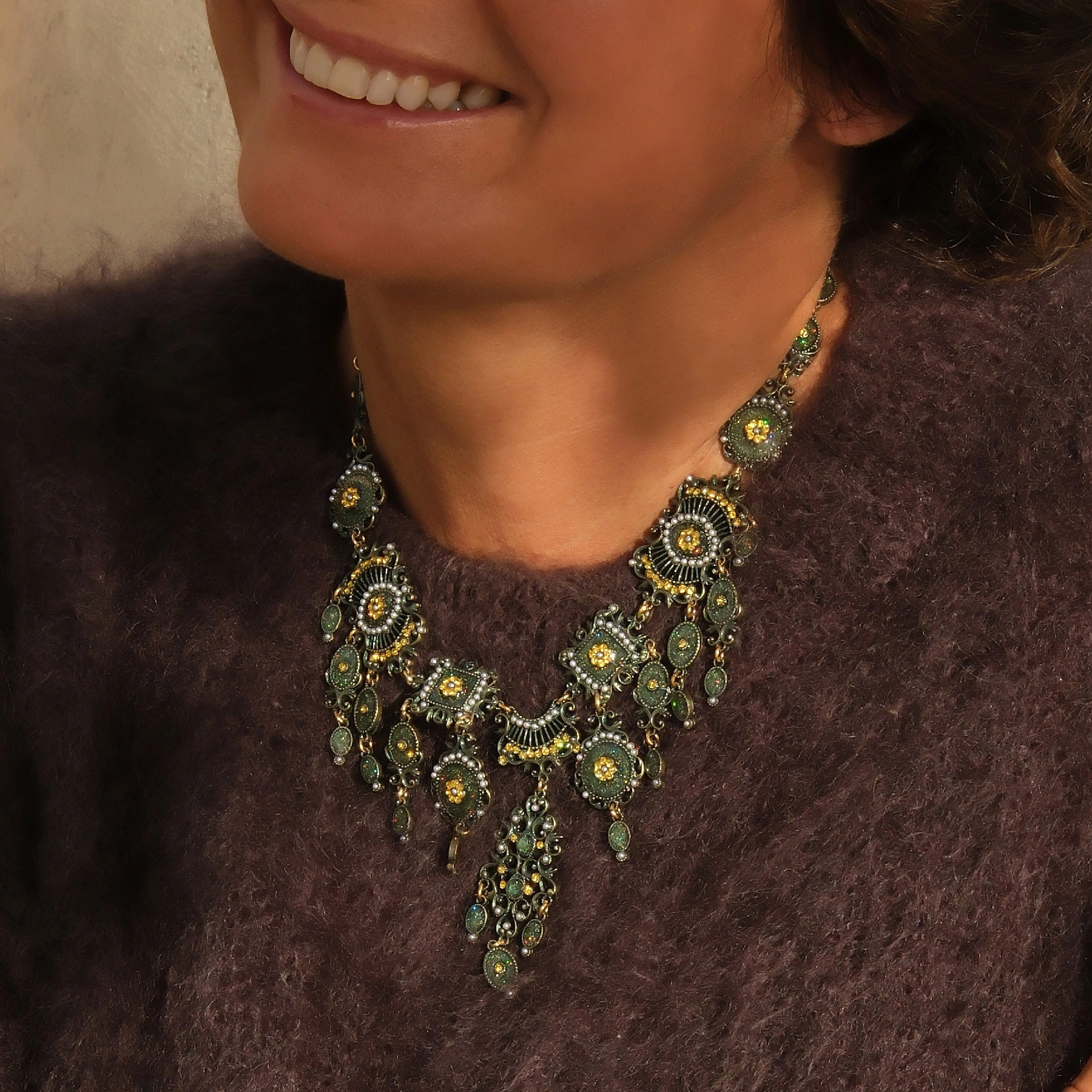Naszyjnik z zielono-żółtymi dekorami z perłami. PONTE DI RIALTO
