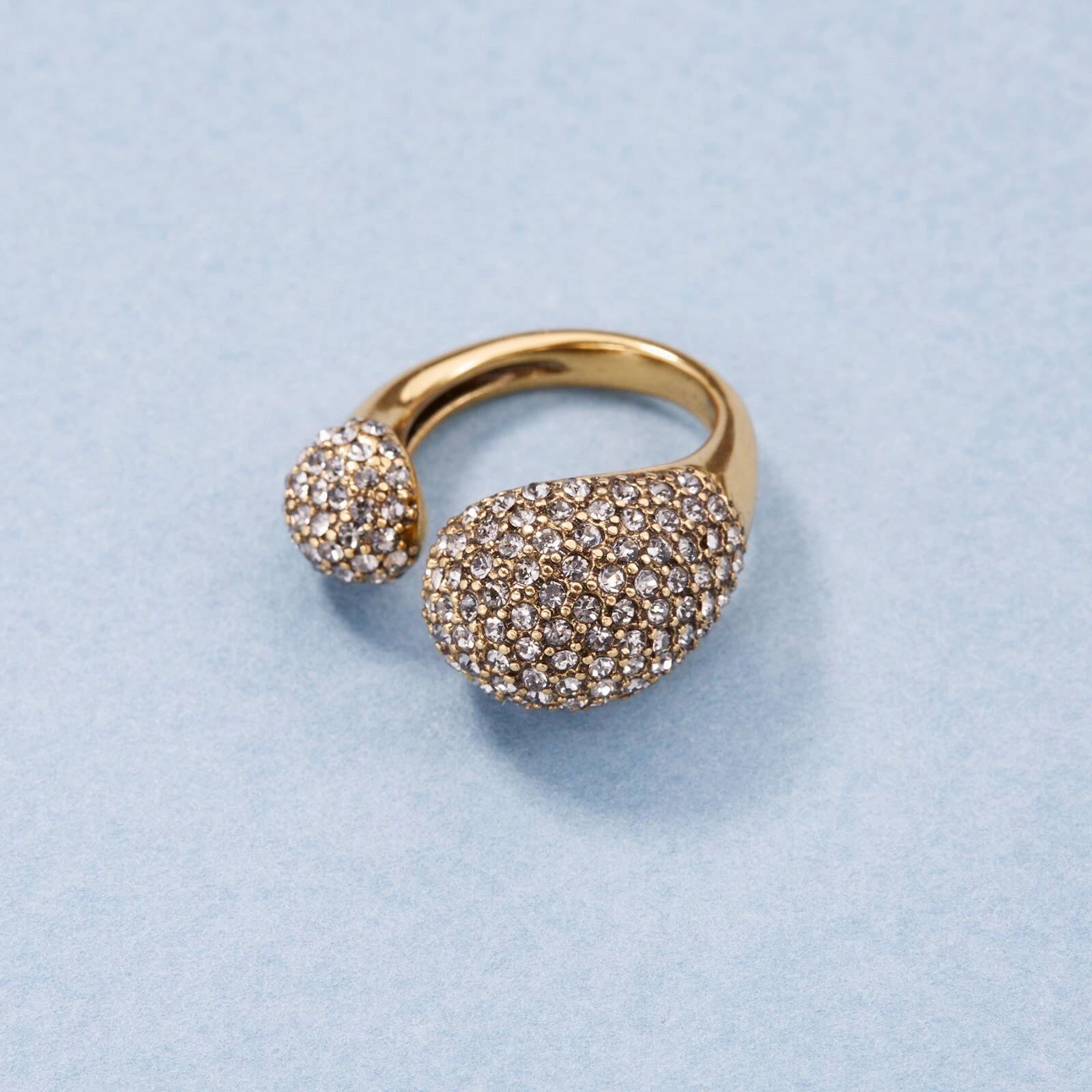 Oryginalny, otwarty pierścień wysadzany kryształkami