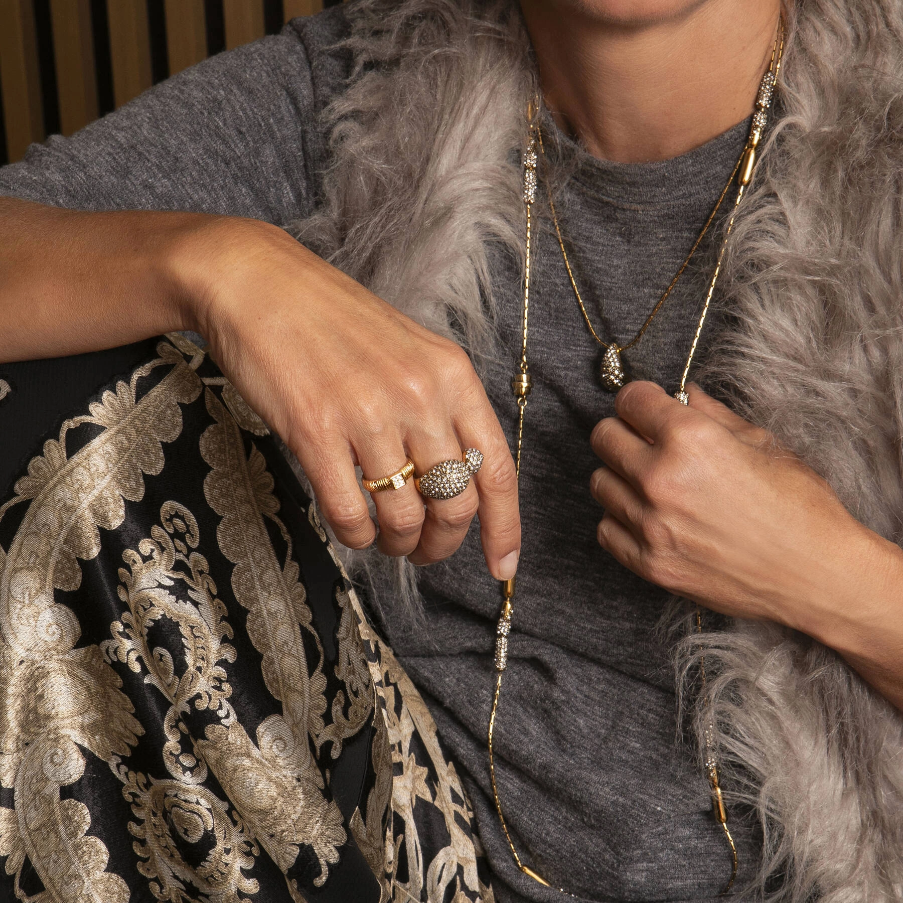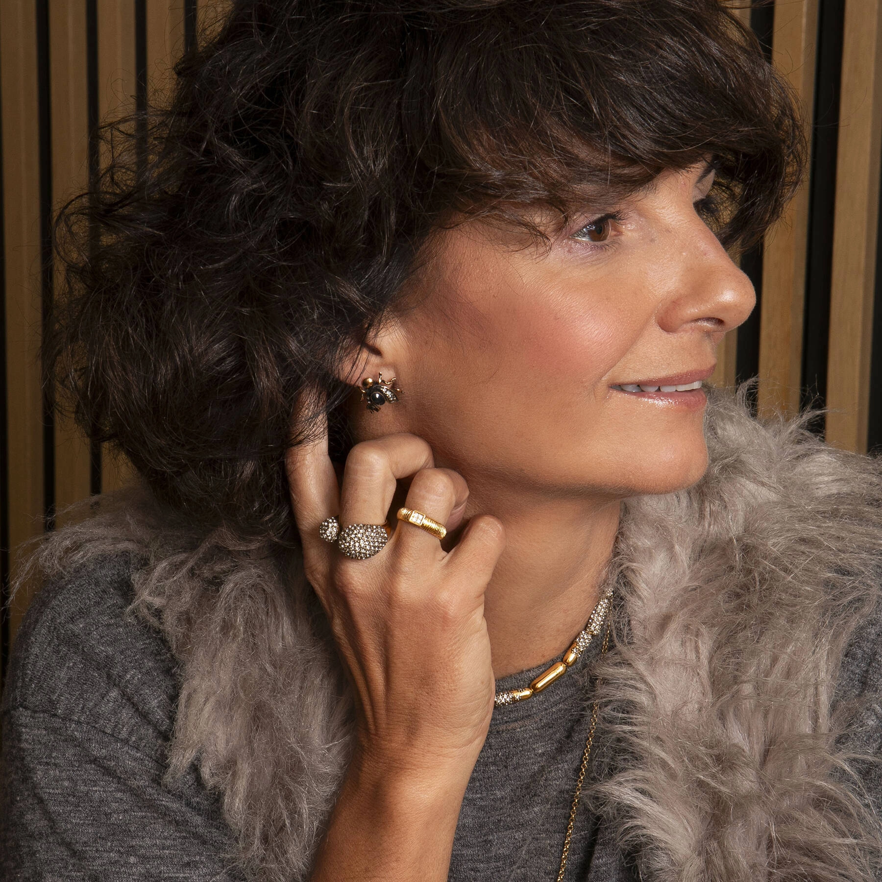 Zaprojektowane przez Hectora pierścionek z kryształem, luksusowa bransoletka czy długie kolczyki z łańcuszkami nadają charakter każdej stylizacji. Moje klientki wiedzą, że uwielbiam kontrasty. Uważam, że biżuteria na co dzień czy do pracy też powinna mieć trochę pazura. Dlatego zachęcam, aby do białej koszuli założyć kolczyki kolce, a sukienkę za kolano uzupełnić perłami w rockowym wydaniu. Unikatowy odcień Vintage Gold to klasa sama w sobie, dzięki czemu bardziej odważny design nic nie traci na stylu.
