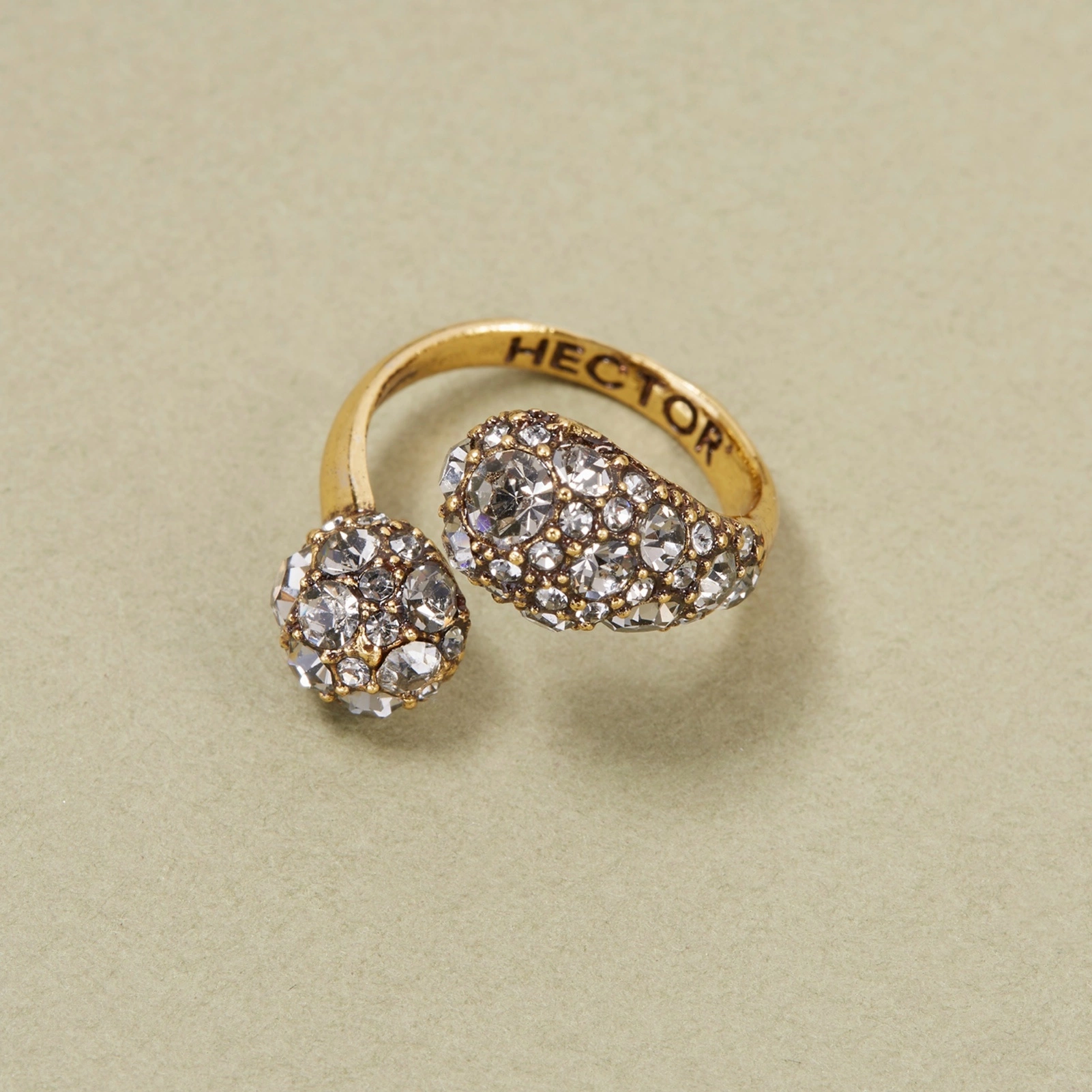 Otwarty złocony pierścionek z kryształowymi łezkami