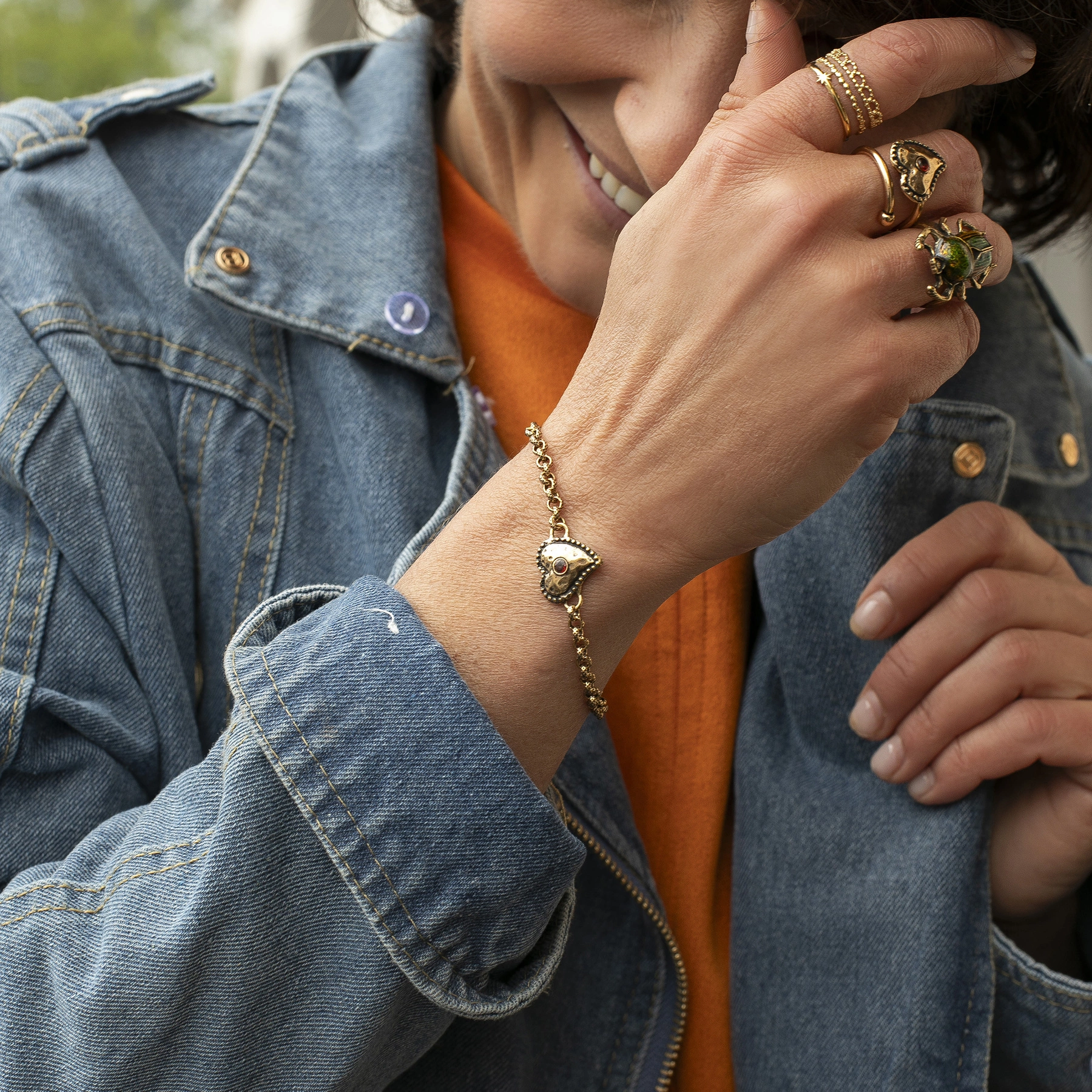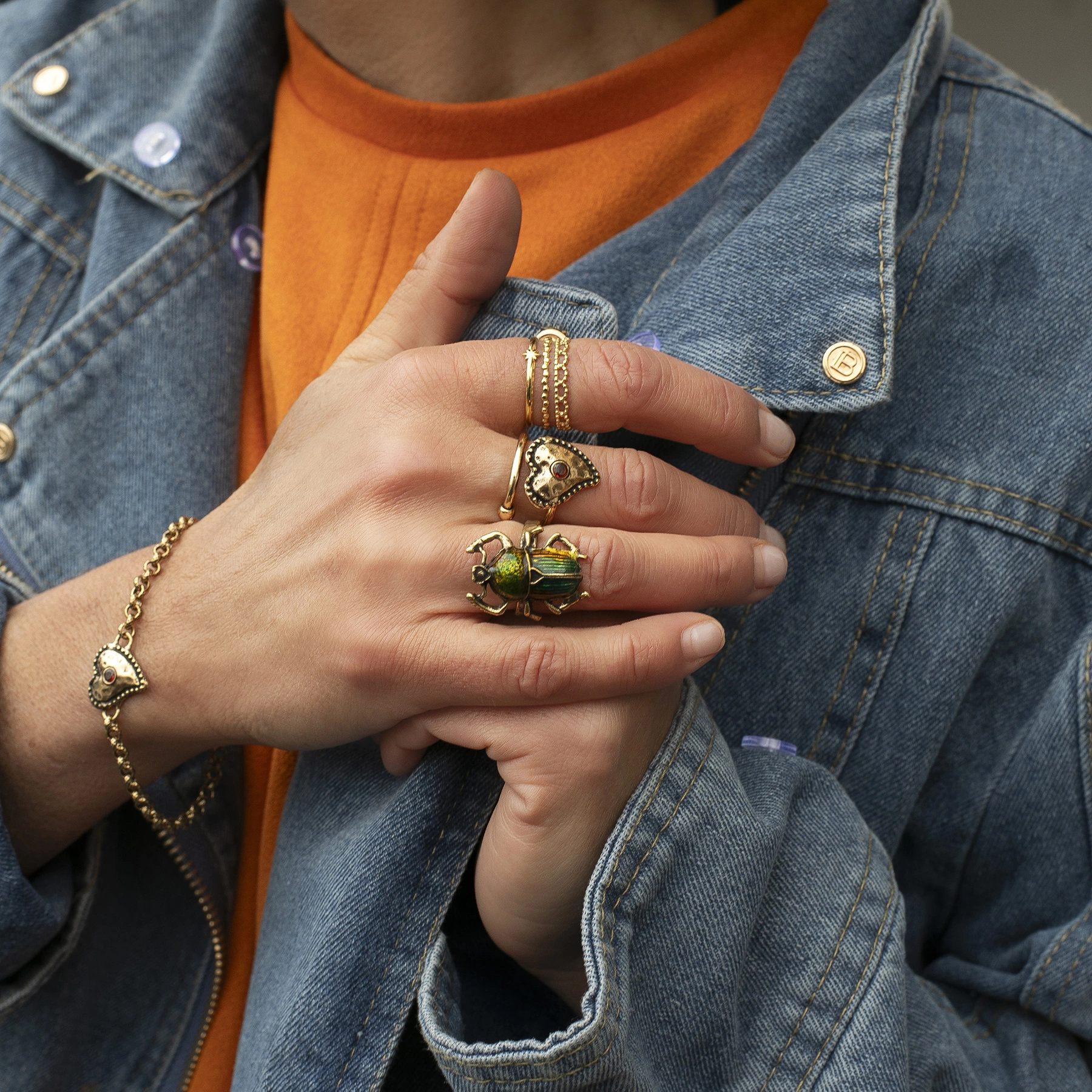 Pierścionek artystyczny skarabeusz, zdobiony emalią