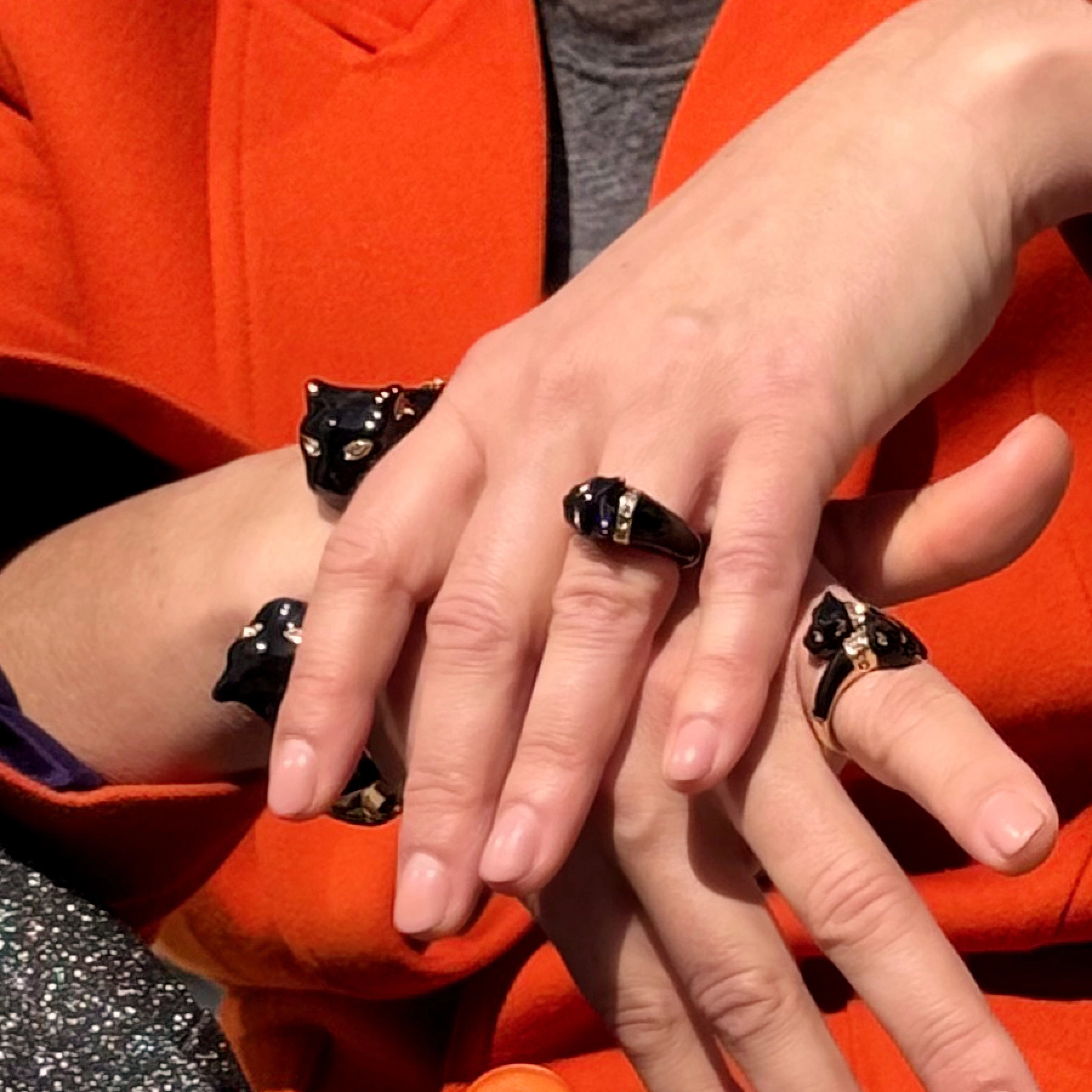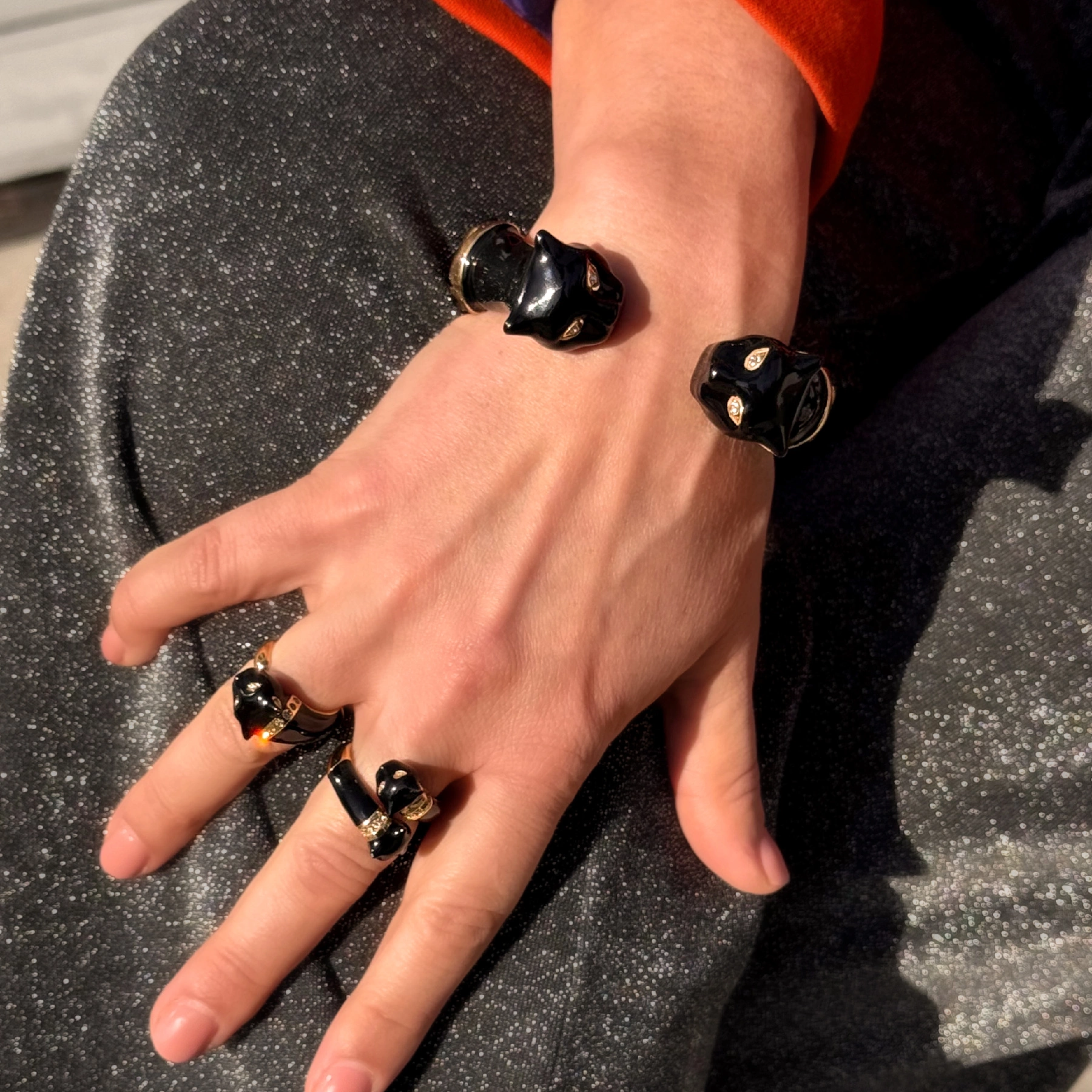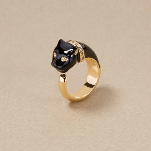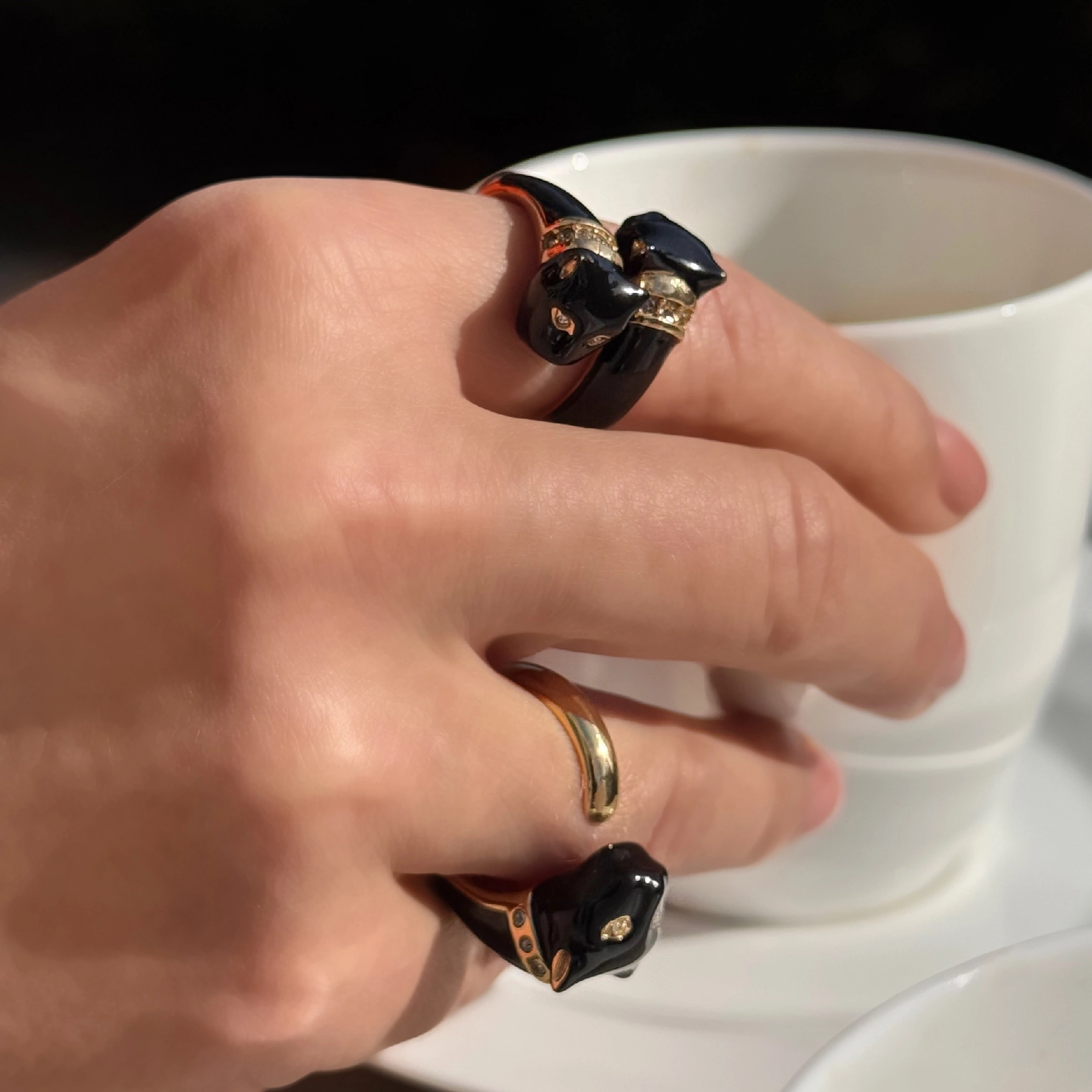 Pierścionek z głową czarnej pantery z cyrkoniami