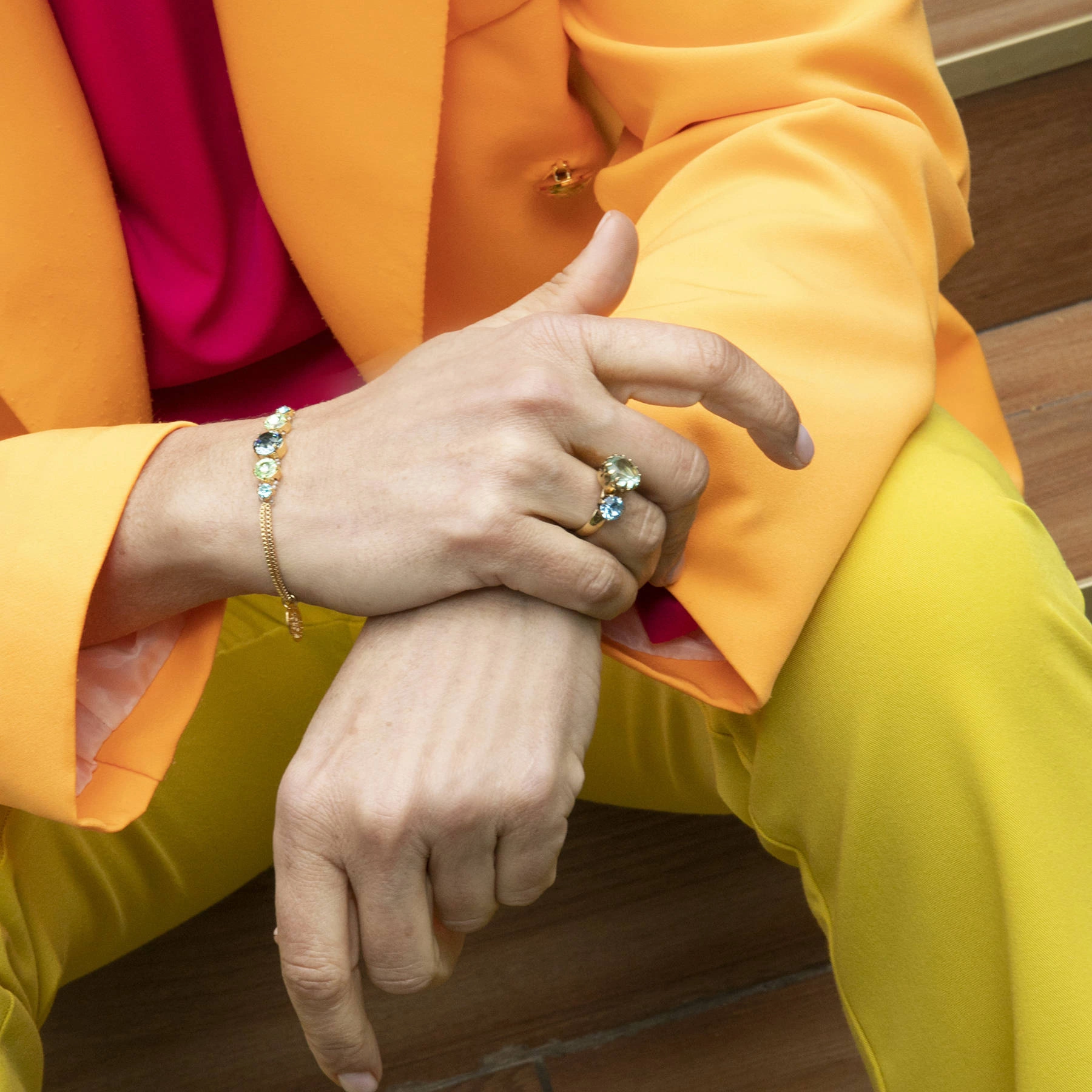 Siostrzana magia sprawia, że kolekcje Caleidoscopio mają w sobie to "coś". Jeanine i Renata ze śmiechem opowiadają o swoim wyjątkowym połączeniu dusz. Mimo że mieszkają w innych miastach, nieraz zupełnie nieumyślnie ubierają się dokładnie tak samo! Spotykają się regularnie, zarówno w rodzinnym gronie, jak i jako partnerki biznesowe w celu omówienia pomysłów na nowe kolekcje. A tych im nigdy nie brakuje. Czasami natchnienie przynosi jakieś wydarzenie na świecie, a czasem zachwyt nad Sagrada Familią. (Jeanine jest wielką fanką Gaudiego!)