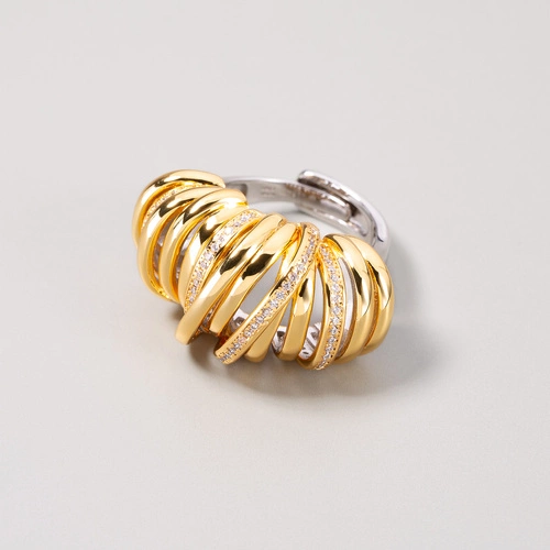 Posrebrzany i pozłacany pierścionek z cyrkoniami. SPIRALA MYŚLI