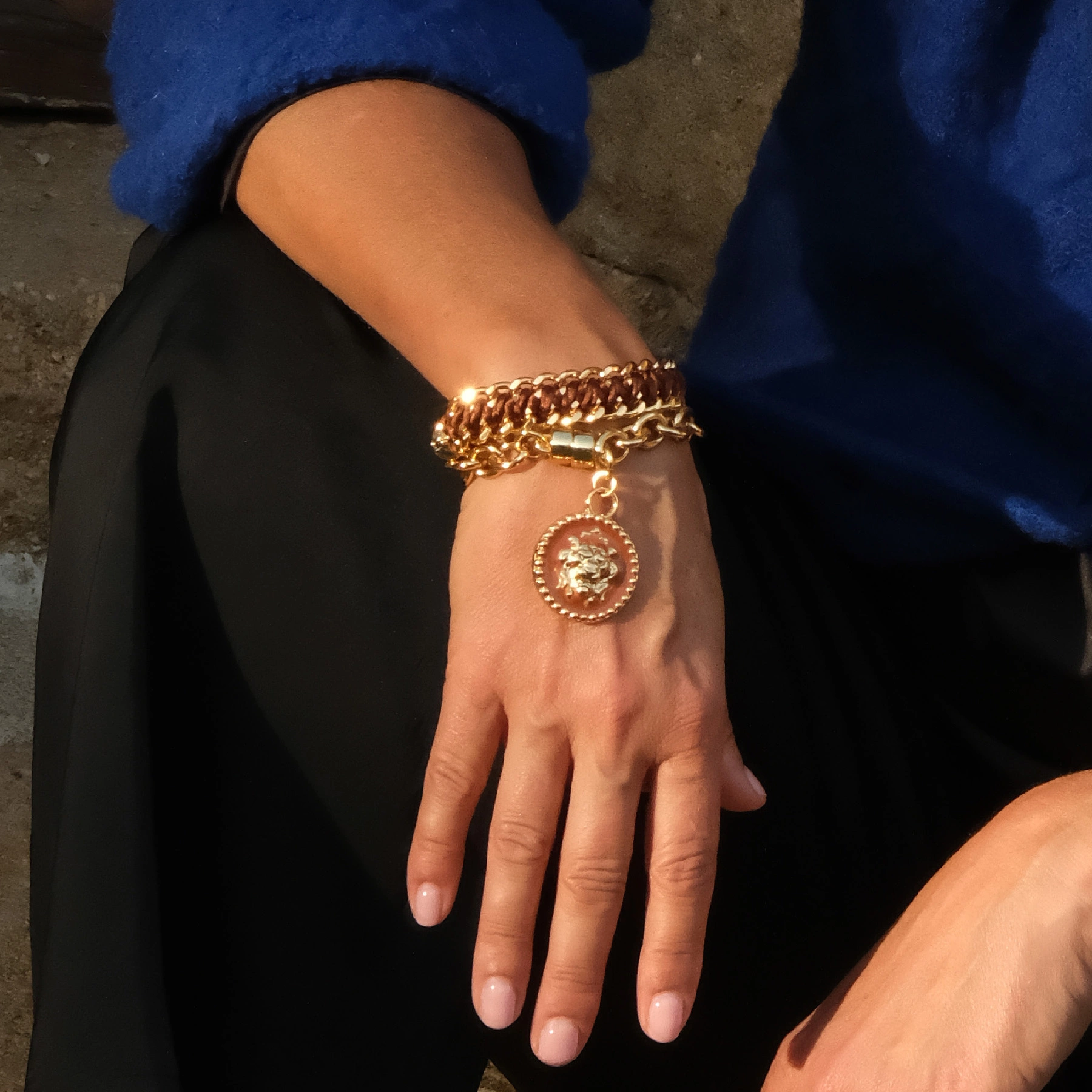 Pozłacana bransoletka łańcuch z ozdobnym medalionem