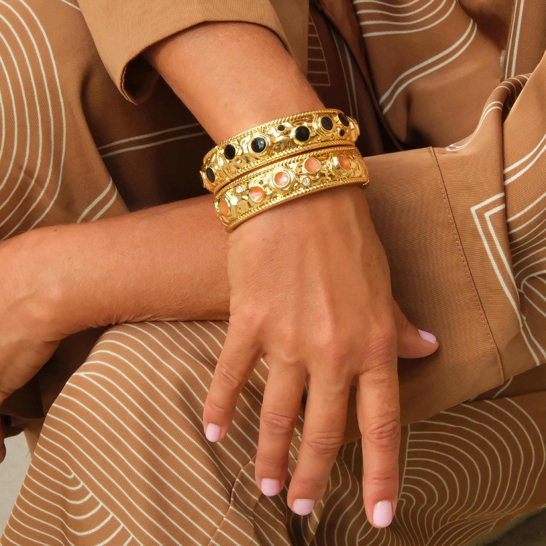 Pozłacana bransoletka z czarną emalią i tłoczeniami