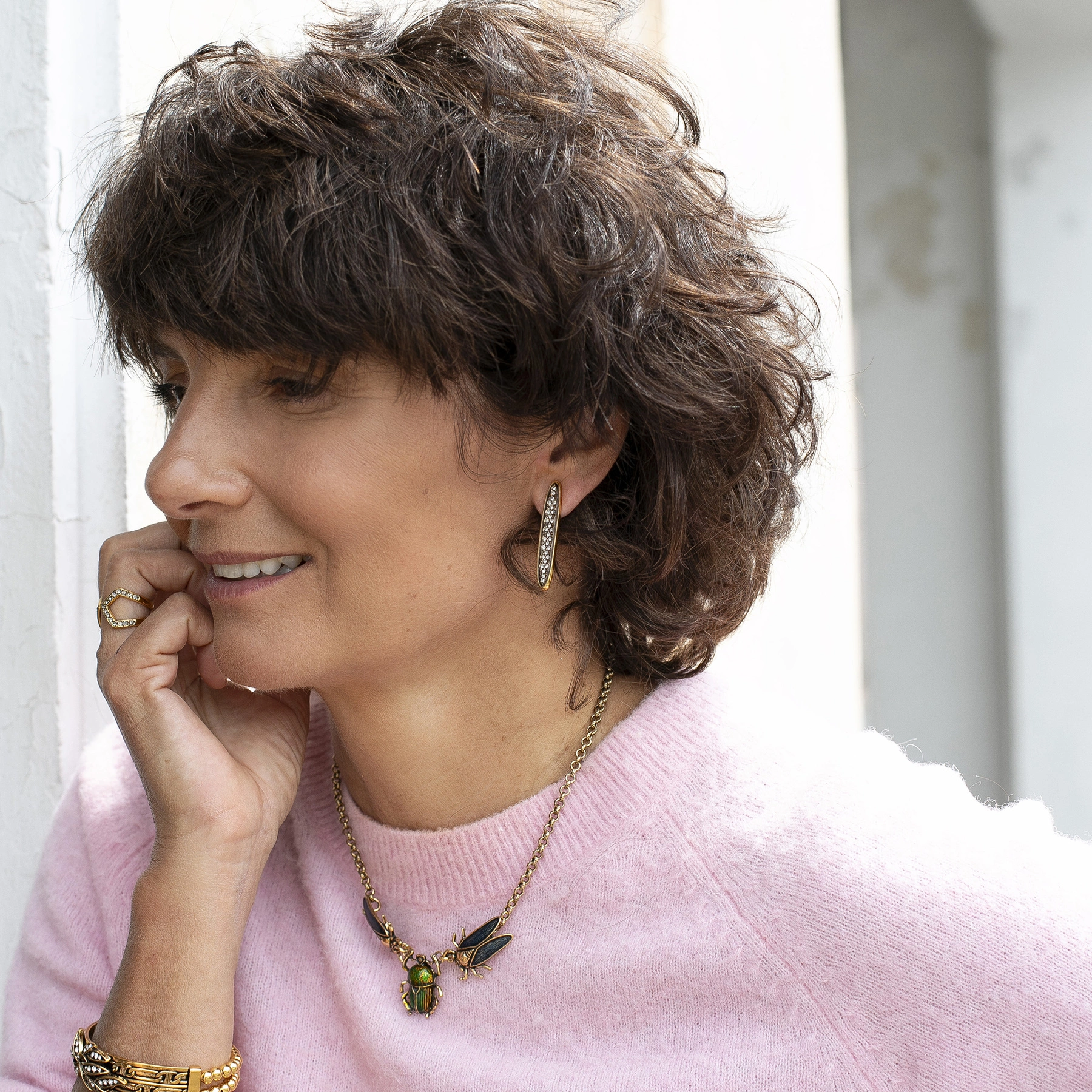 Monica di Creddo to mistrzyni jubilerskiego rzemiosła z Brazylii. Tworzy biżuterię, która potrafi nadać nowe znaczenie stylizacjom. Wystarczą jedne retro kolczyki… I zwykła koszula nagle staje się kreacją na wieczór. Jej proces twórczy jest równie wyjątkowy jak to co z niego powstaje. Nie rysuje, nie planuje na papierze. Po prostu chwyta materiał i pozwala, by emocje i intuicja poprowadziły ją dalej.
