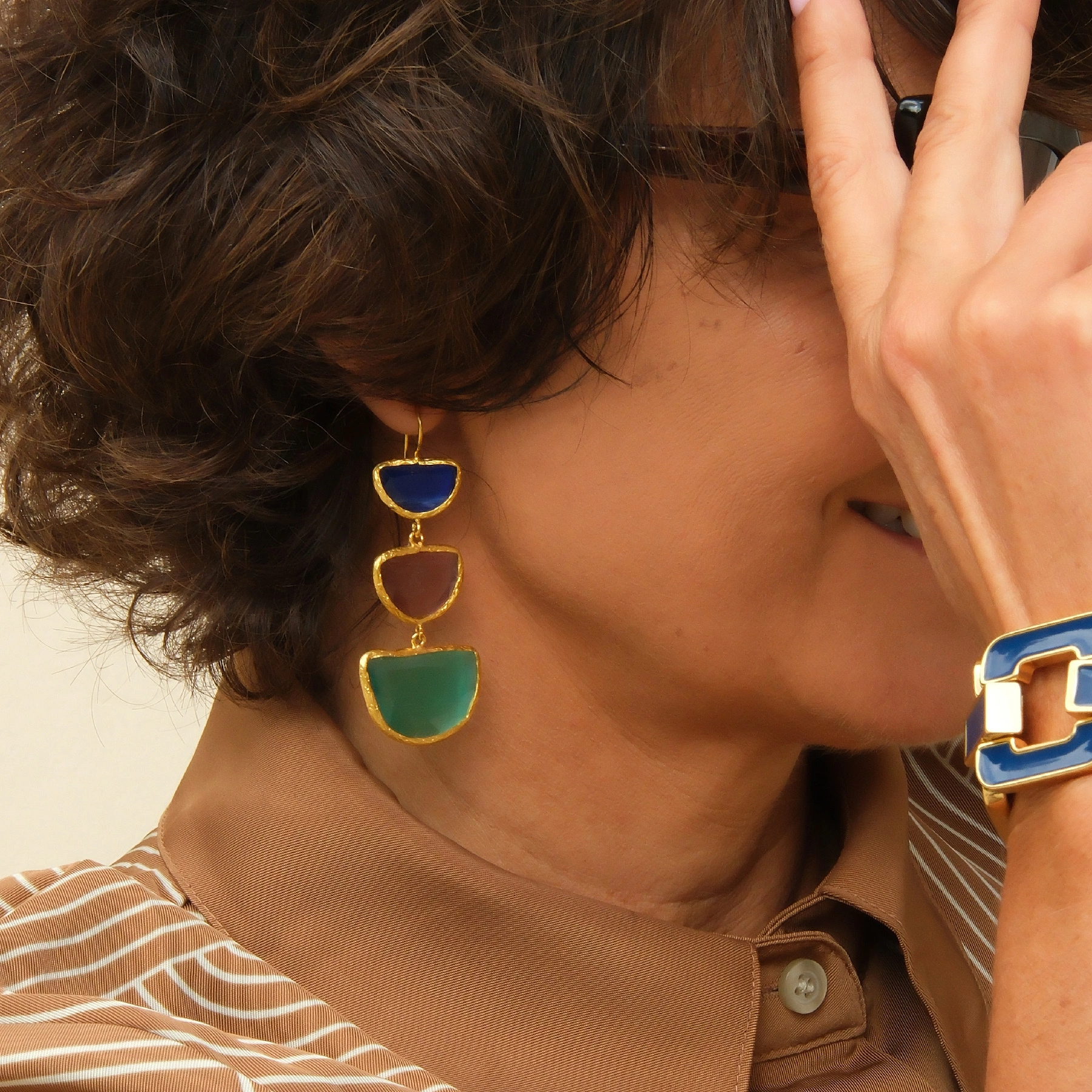 Pozłacana bransoletka z ogniw emaliowanych na granat