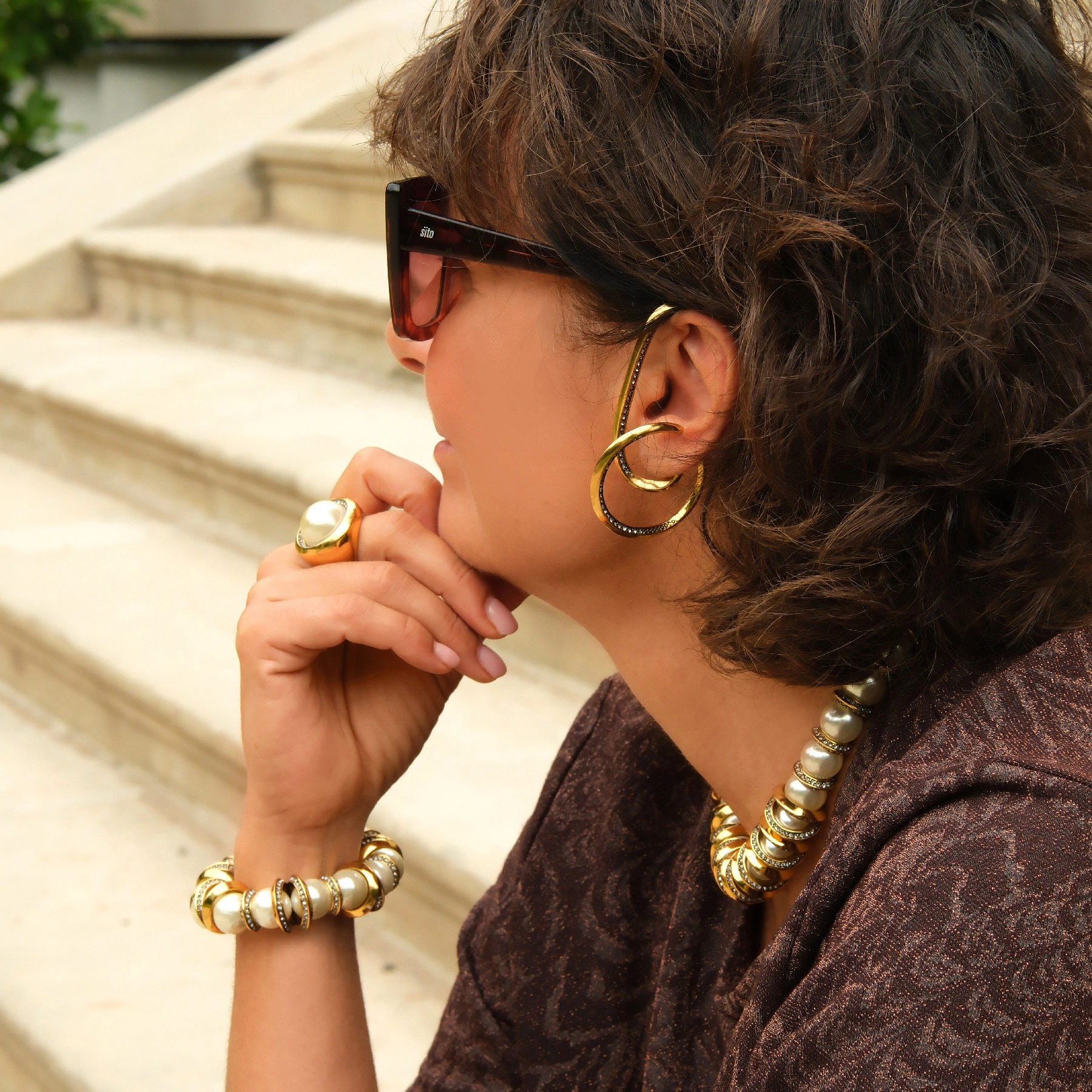 Zaprojektowane przez Hectora pierścionek z kryształem, luksusowa bransoletka czy długie kolczyki z łańcuszkami nadają charakter każdej stylizacji. Moje klientki wiedzą, że uwielbiam kontrasty. Uważam, że biżuteria na co dzień czy do pracy też powinna mieć trochę pazura. Dlatego zachęcam, aby do białej koszuli założyć kolczyki kolce, a sukienkę za kolano uzupełnić perłami w rockowym wydaniu. Unikatowy odcień Vintage Gold to klasa sama w sobie, dzięki czemu bardziej odważny design nic nie traci na stylu.